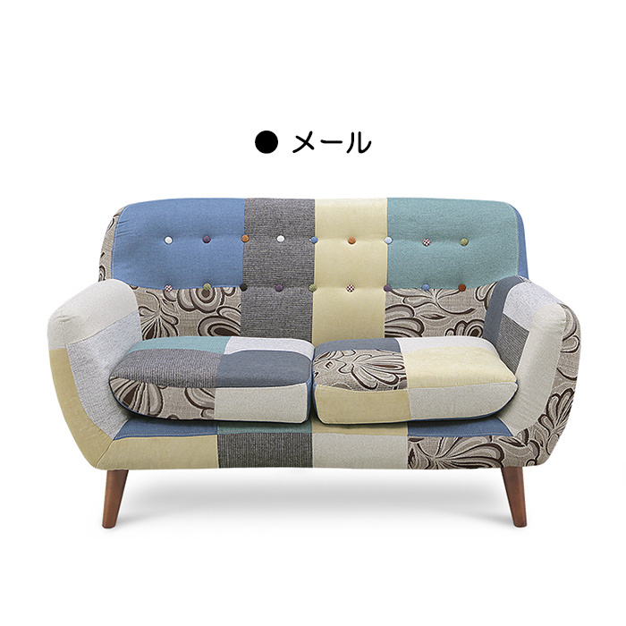 ソファ 2人用 パッチワークソファ ファブリック 2人掛け 2P ポップ ラブソファ 独り暮らし 1人暮らし 2人暮らし メール