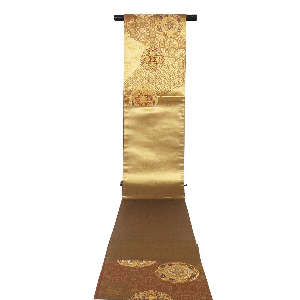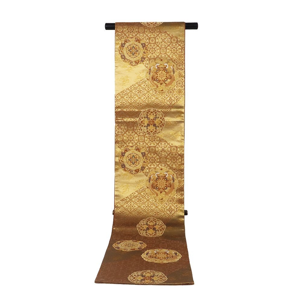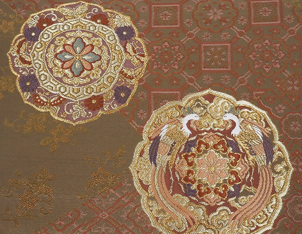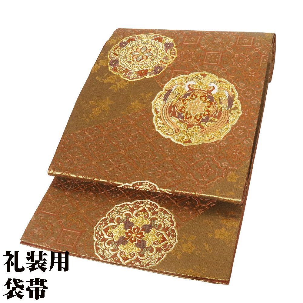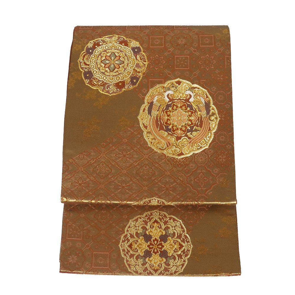 | 西陣織袋帯 赤茶・金箔地 鳳凰・華文 仕立て上がり |