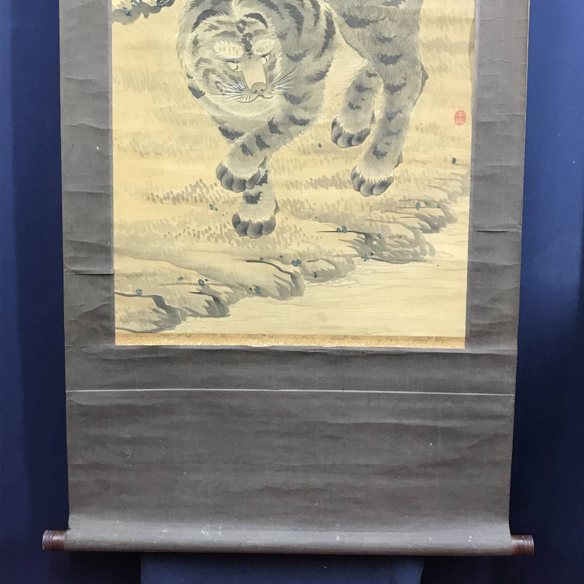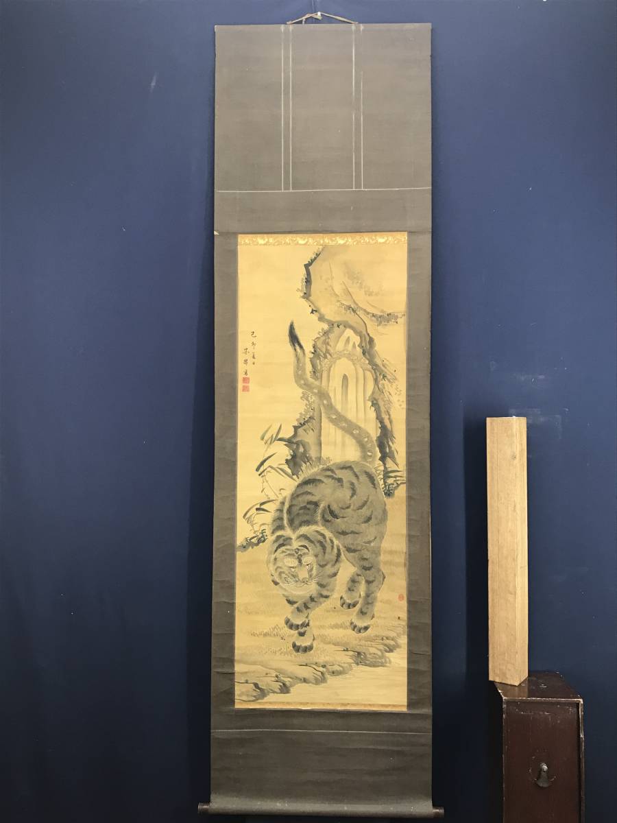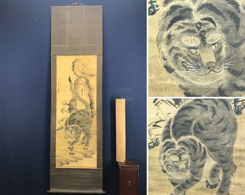 真作/木界/古画猛虎図/虎図/トラ図//掛軸☆宝船☆AD-565