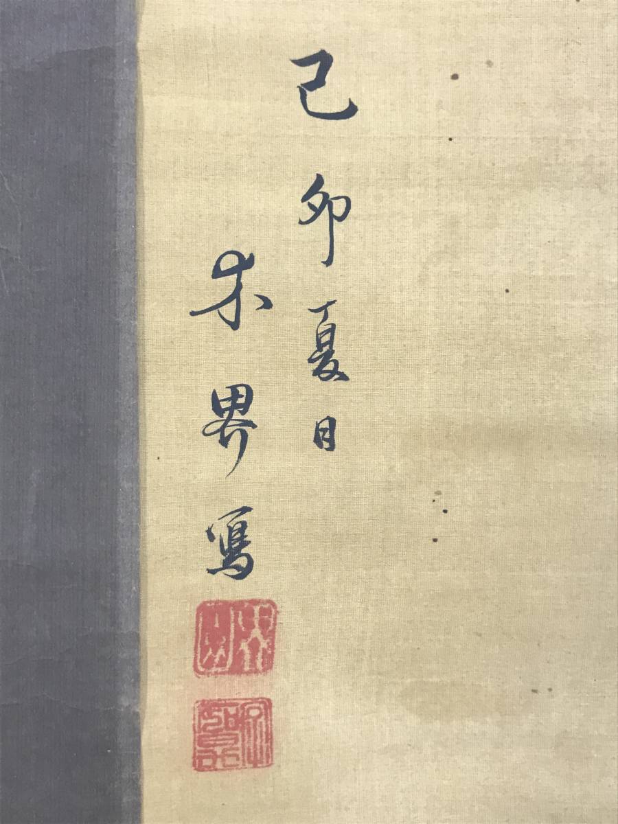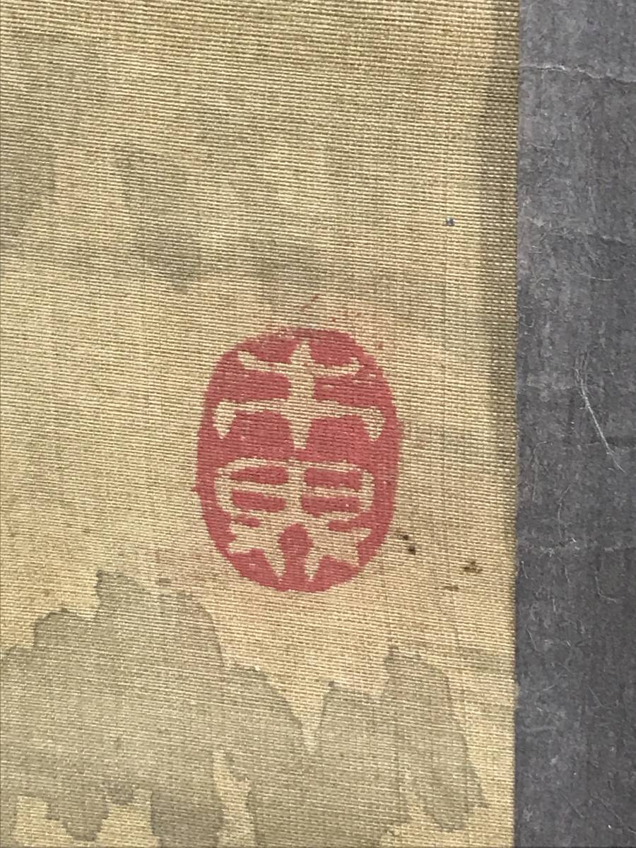 【作品状態】 本紙は絹本肉筆です。 本紙は時代感あり、全体に汚れシミあります。表装は紙表装で時代感あり、全体に汚れシミあります。