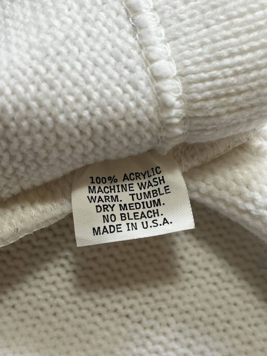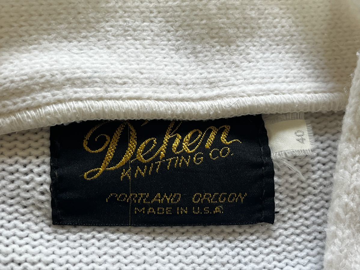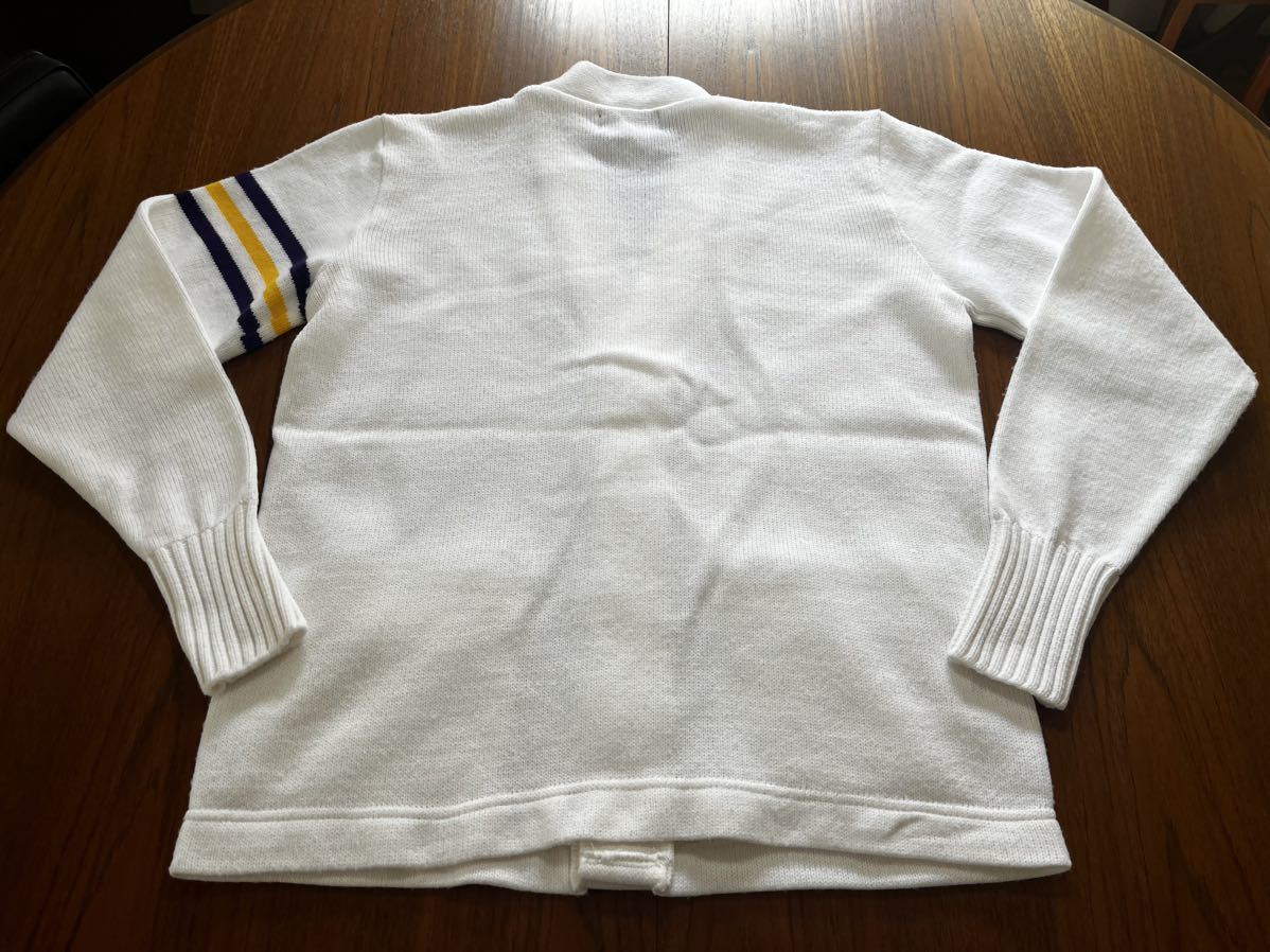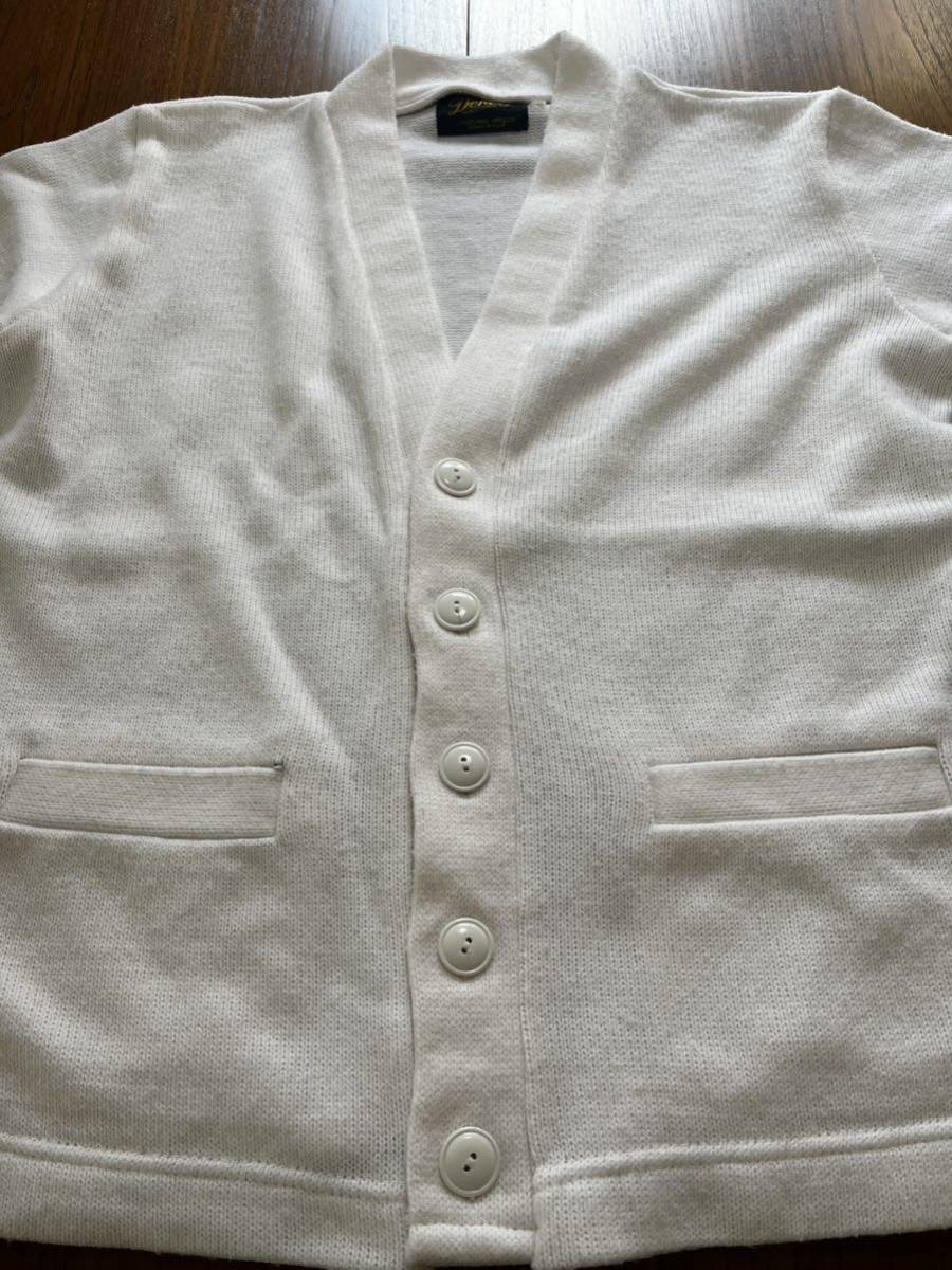 アメリカ製ニットカーディガンになります。多少の毛玉と薄い汚れはありますが、カラーを考えると程度は比較的良いと思います。サイズ40で肩幅45cm身幅55cm着丈62cm袖丈62cmになります。