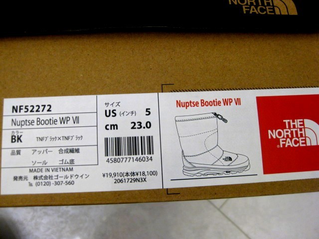 ノースフェイス スノーシューズ ヌプシ ブーティ ウォータープルーフ NF52272 BK WB the north face 23