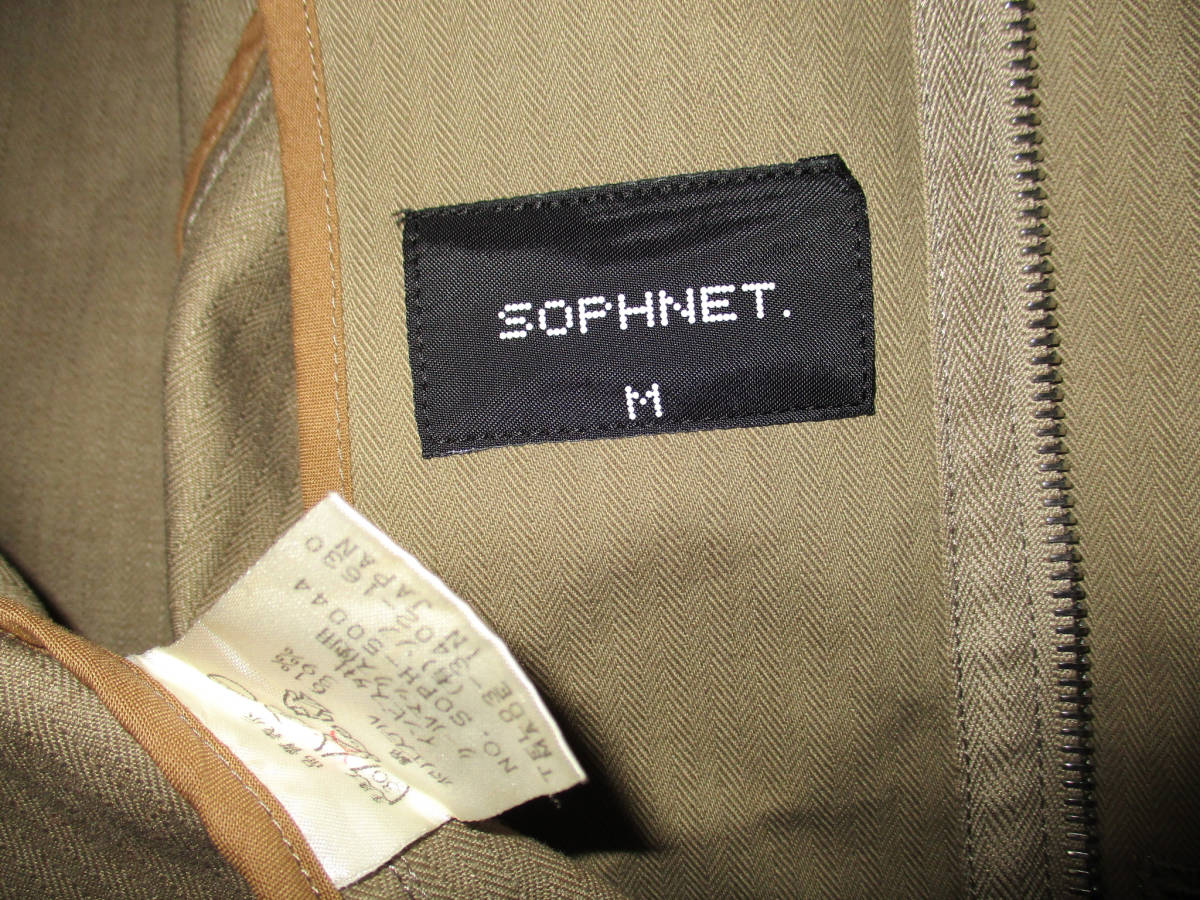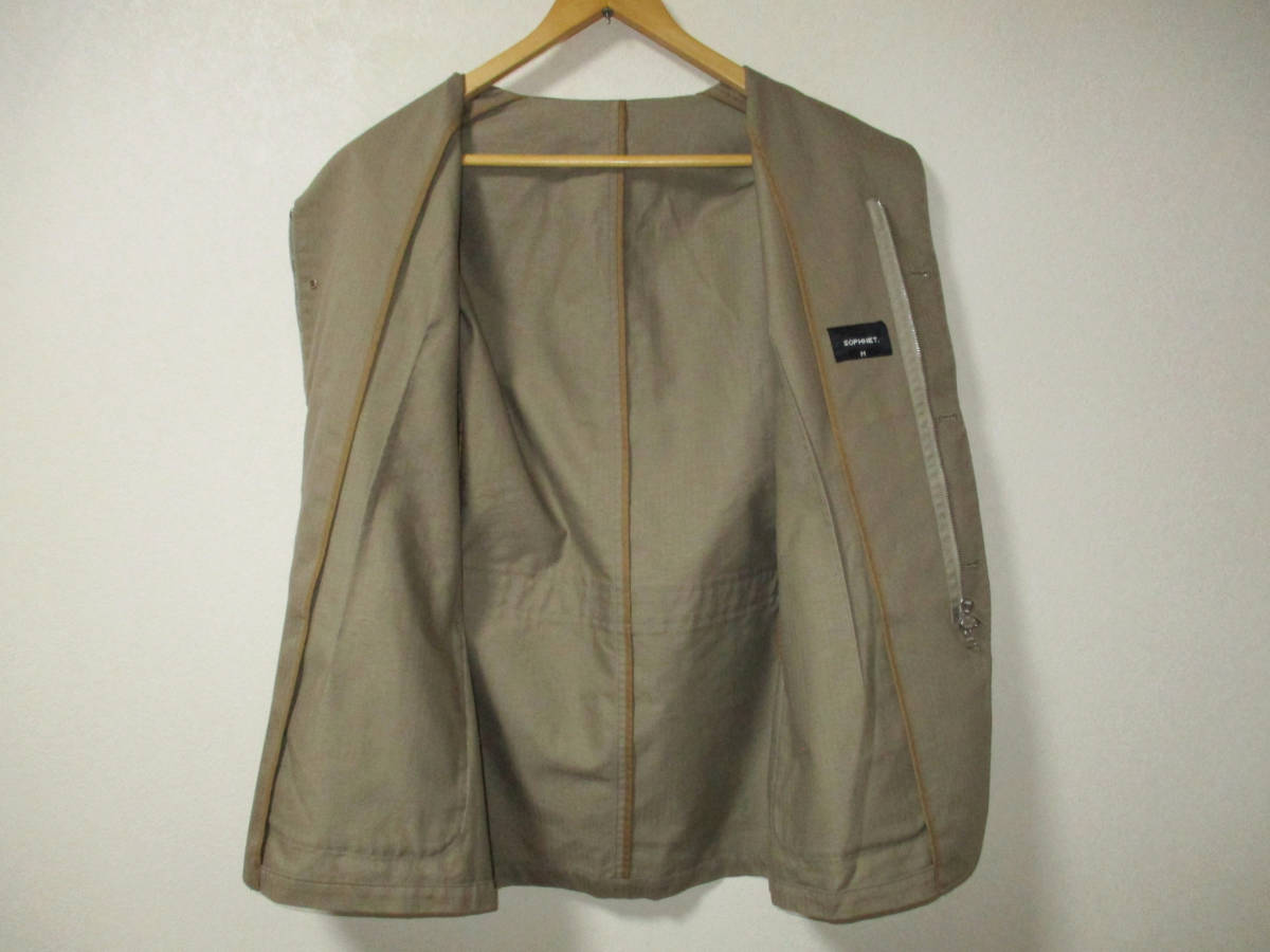 SOPHNET ソフネット ジャケット カーキ系 サイズ M です。日本製の正規品です。素材は綿61,ポリエステル39です。インビスタ社 クールマックス使用です。フロントはririのジッパーとボタン留めです。色はベージュぽいカーキ系です。色はは画像でご判断ください