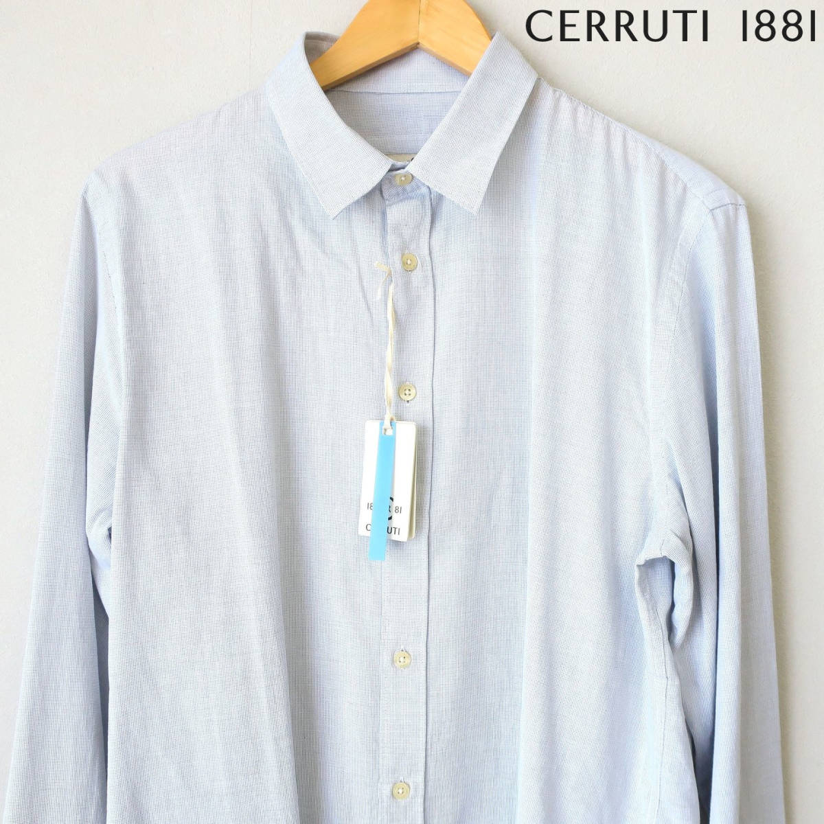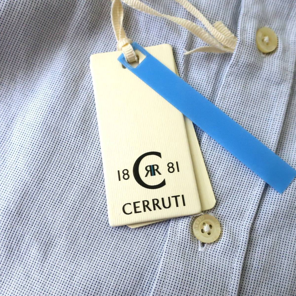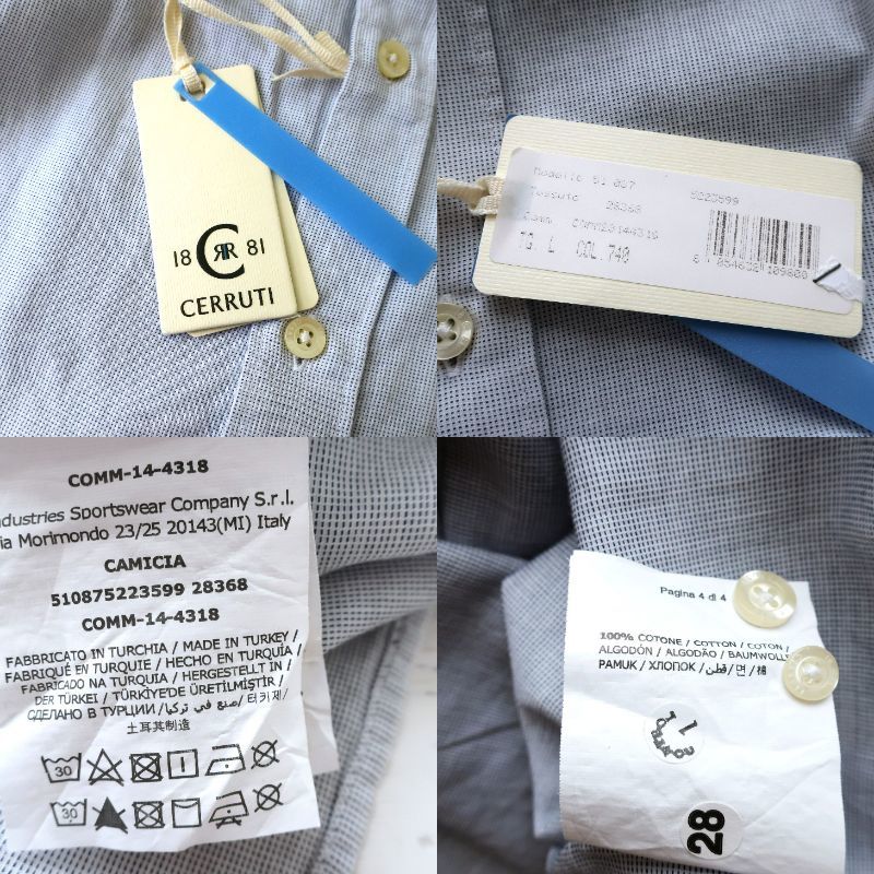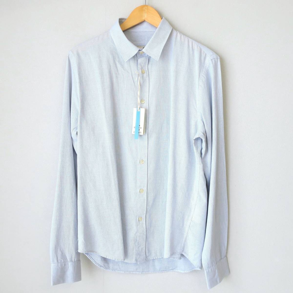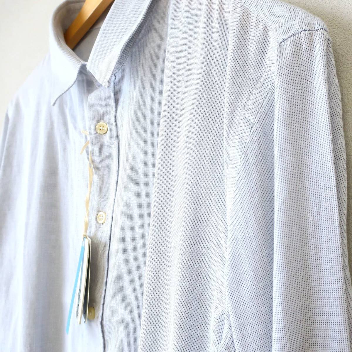 新品 未使用 CERRUTI 1881 セルッティ 高級 メンズ ドレスシャツ スリム ソフト 長袖シャツ ボタンシャツ イタリア 青 ブルー Lサイズ