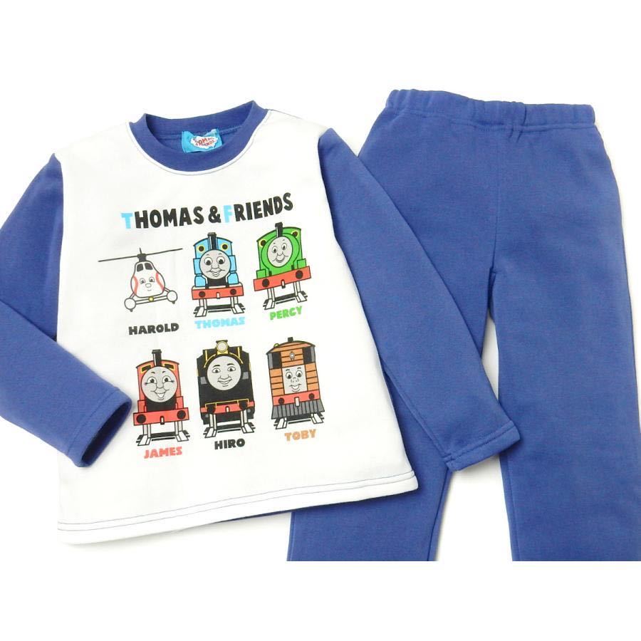 新品62060 100cmきかんしゃトーマス ネイビー 裏起毛長袖シャギーパジャマ ルームウエアあったか男子 キッズ ボーイズ パーシージェームス