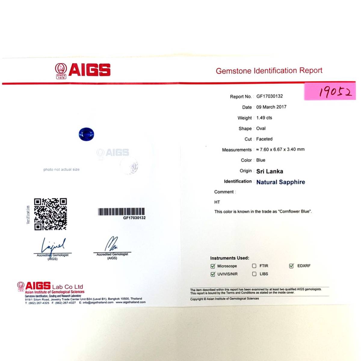 付属品 | AIGS鑑別書 |
