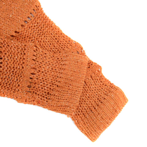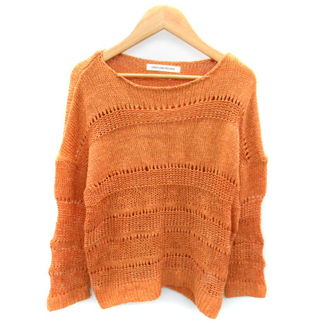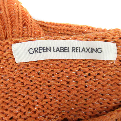 グリーンレーベルリラクシング ユナイテッドアローズ ニット カットソー 長袖 ラウンドネック 透かし編み オレンジ /SY30 レディース