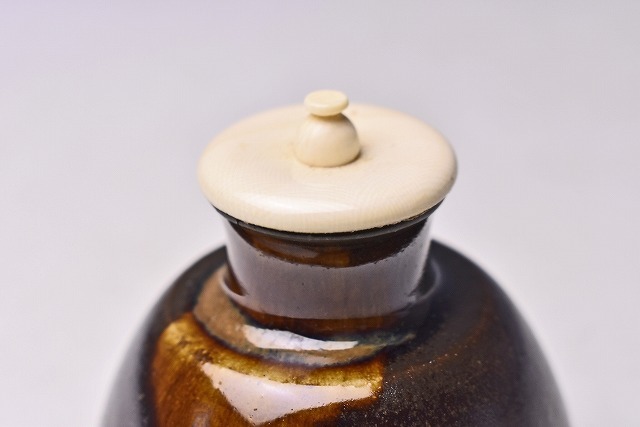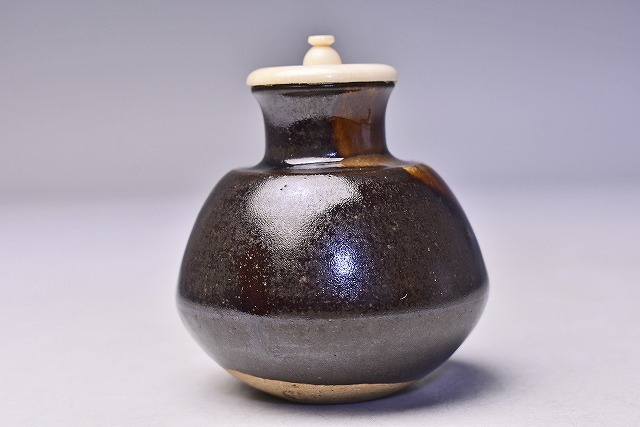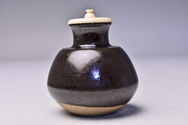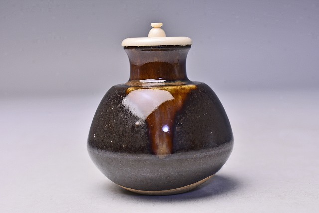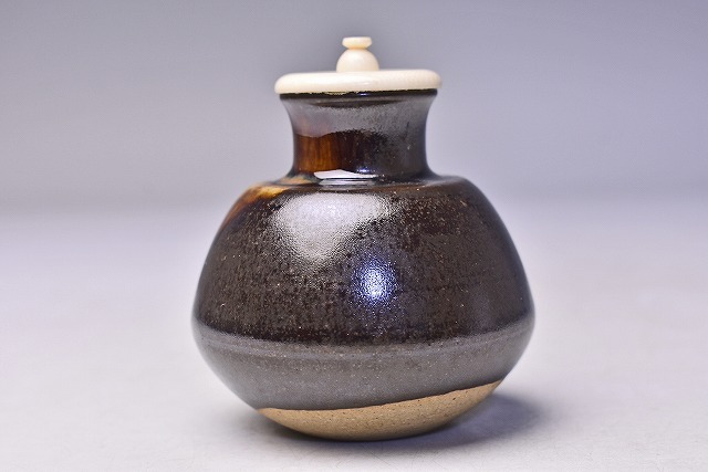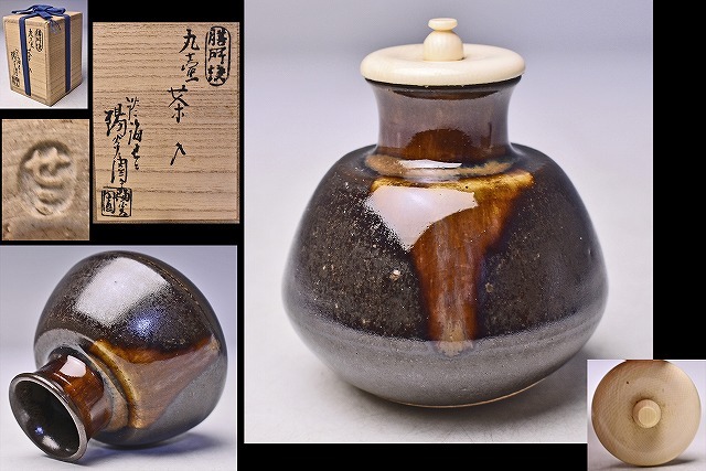 膳所焼 ★ 丸壺 茶入 ★ 共箱 牙蓋 ★ 造形釉景の良い逸品 ★ 小堀遠州七窯 ★ 陽炎園 ★ 茶道具 ★ 滋賀県 ★