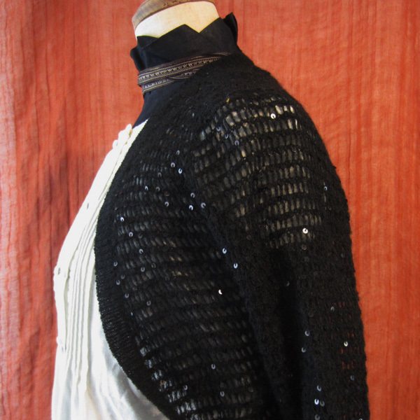 美品 ロペ ROPE ニット&スパンコールのボレロ カーディガン 黒