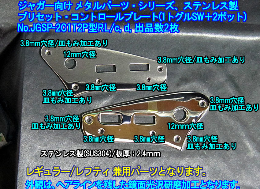 ジャガー/Jaguarタイプ向け レギュラー/レフティ兼用 プリセットコントロールプレート/1トグルSW+2POT仕様,ステンレス製 1枚出品/出品数2枚