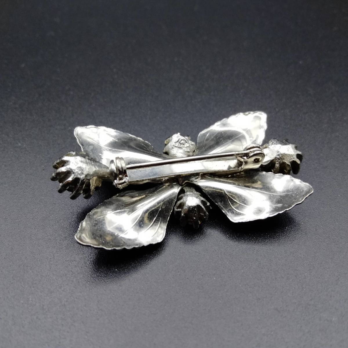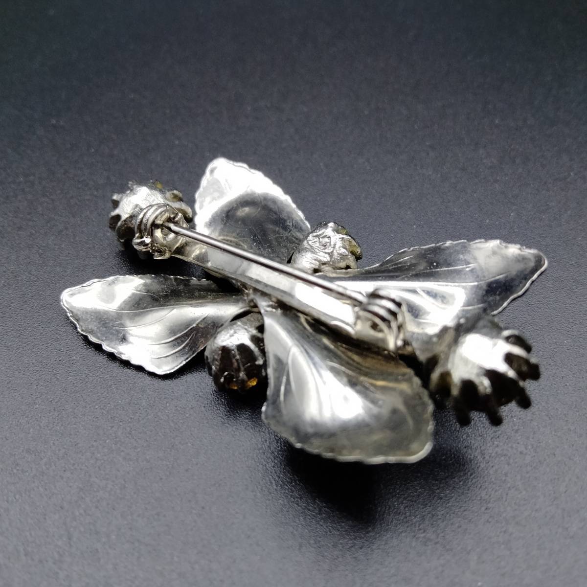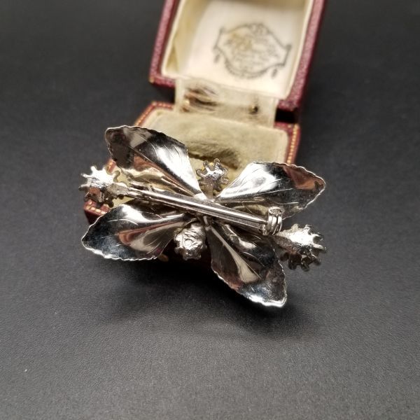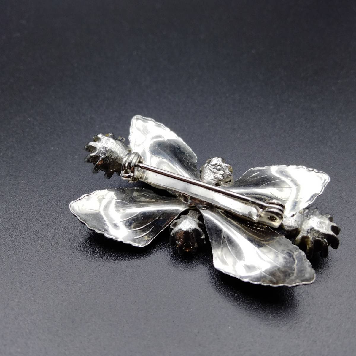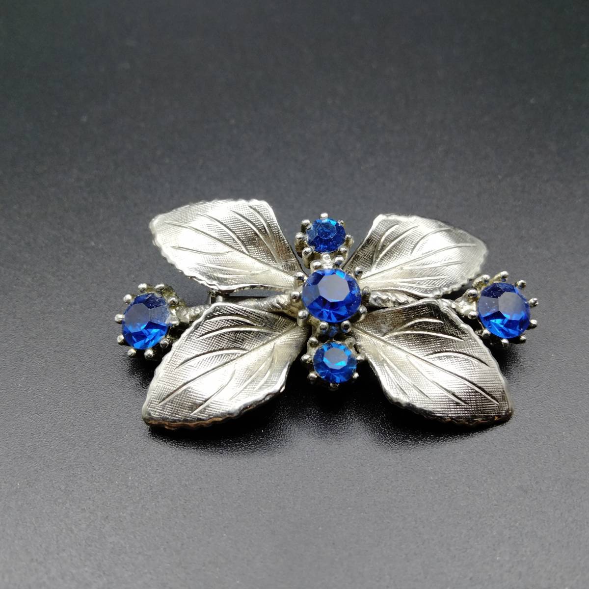 リーフ 植物 モチーフ サファイヤブルー ラウンド ストーン シルバートーン クラシック ヴィンテージ ブローチ ジュエリー 輸入 Y9-B