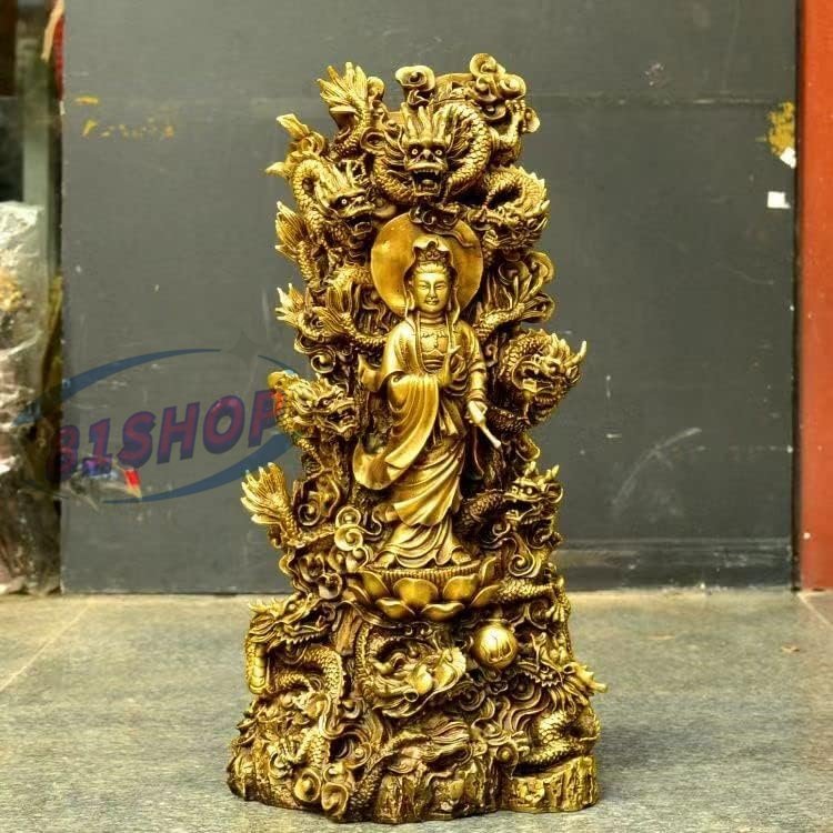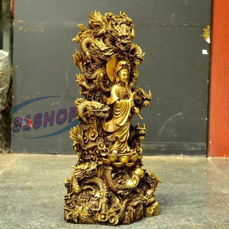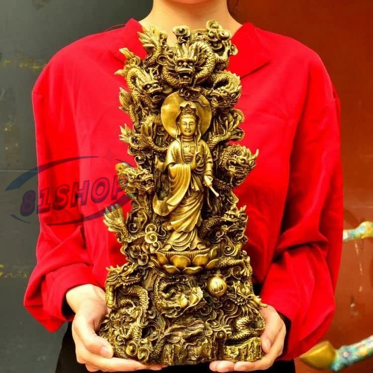 「81SHOP」 仏像 龍乗観音 観音像 立像 九龍観音 騎龍観音 龍上観音 仏壇仏像 祈る 厄除け総高39cm
