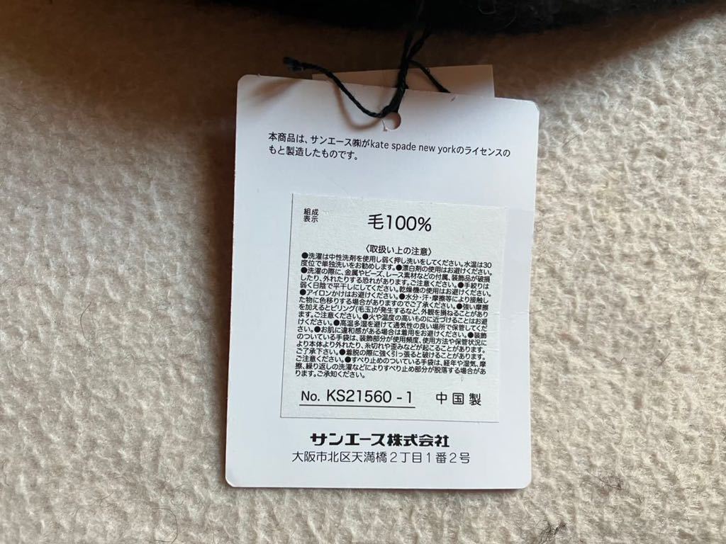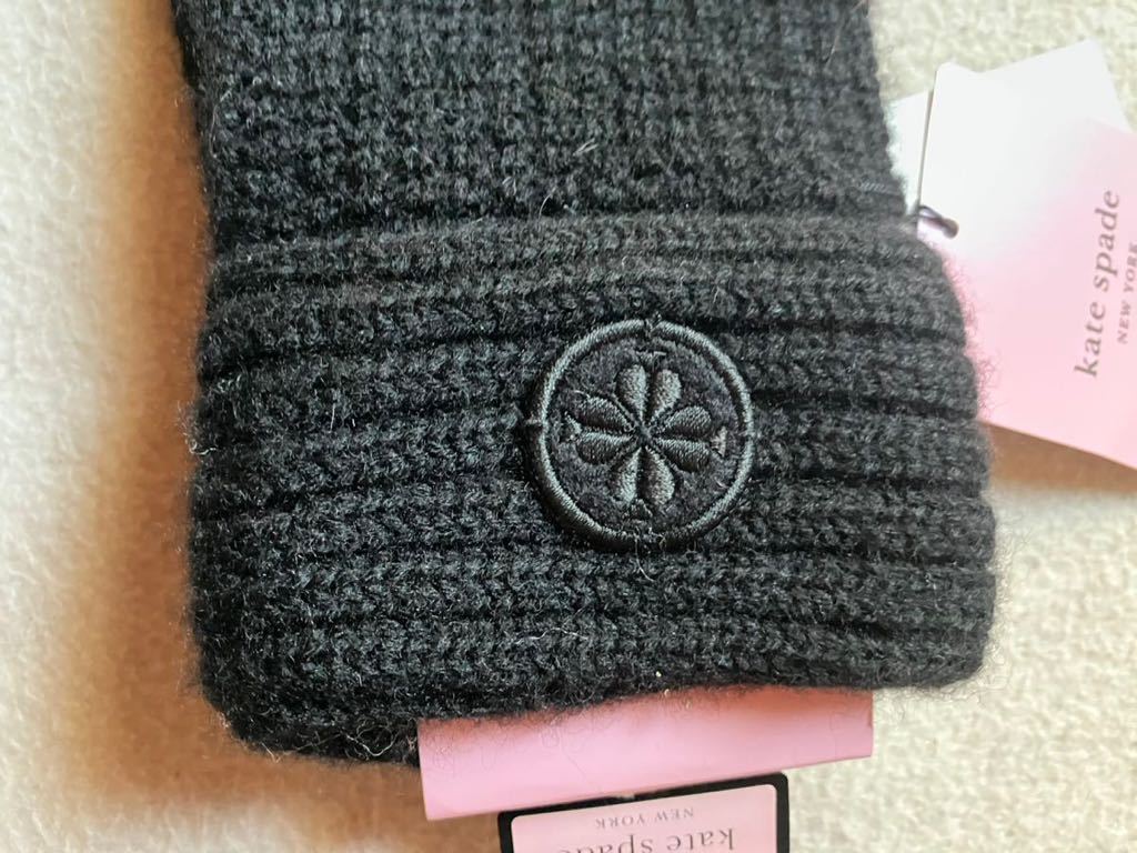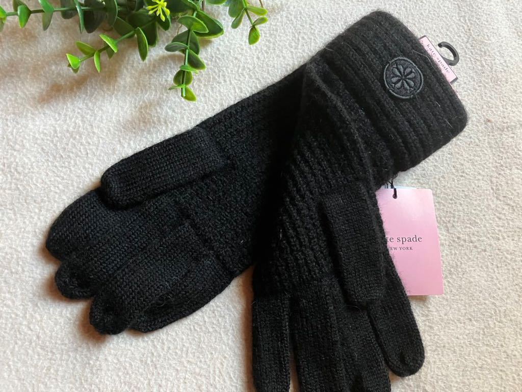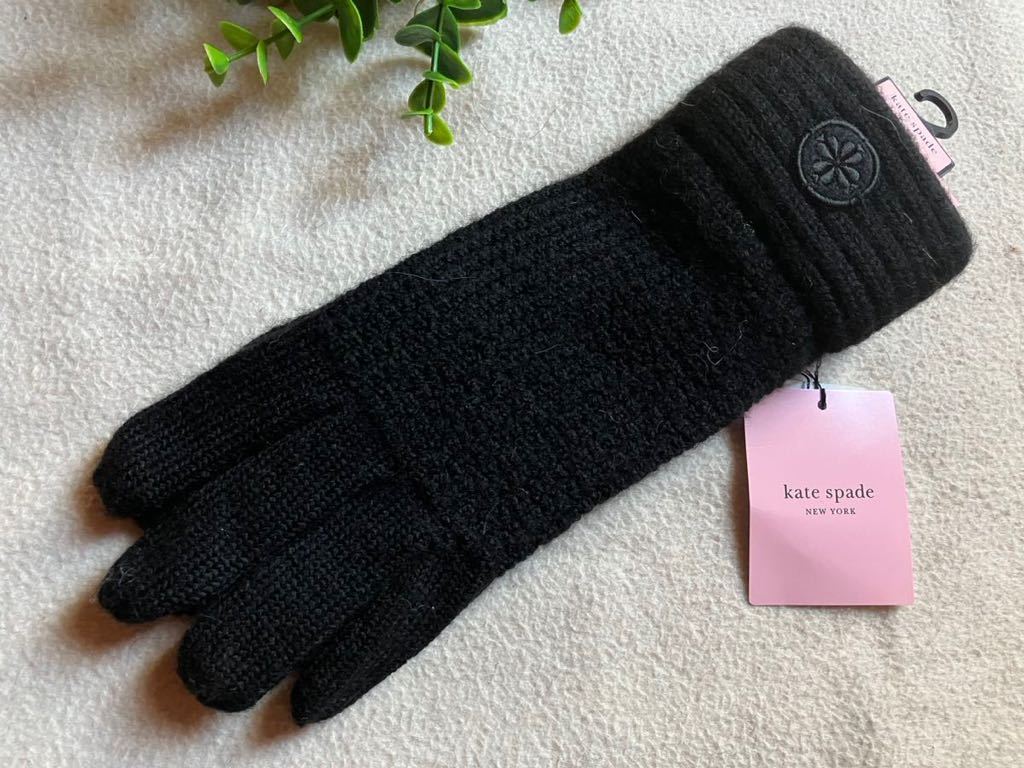 ★新品★ kate spade ケイトスペイド ワッペン付 ニット手袋 ウール100% レディース ブラック