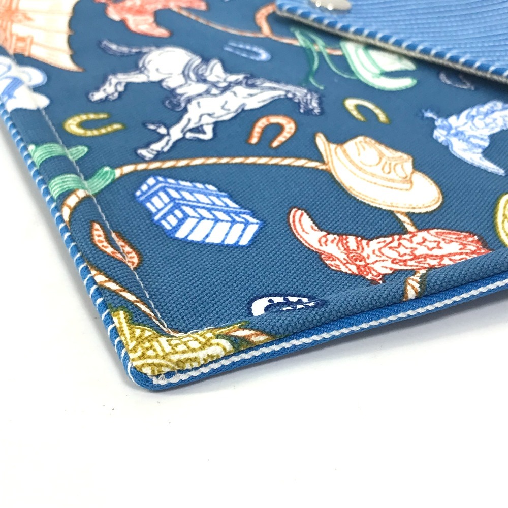 未使用 HERMES エルメス ウエスタンカンパニーGM 封筒ケース ポーチ ブルー レディース【中古】