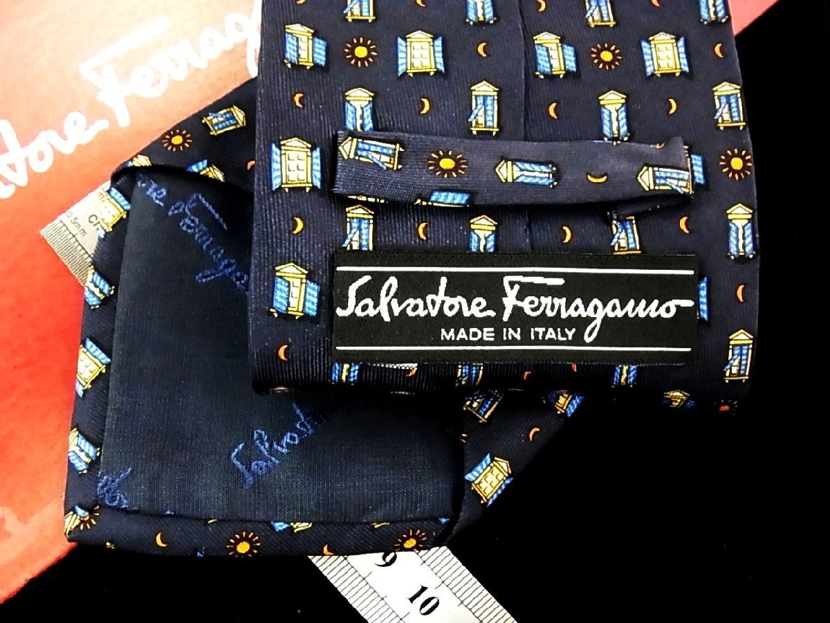 ♪今週の特売980円~♪2384♪良品【Ferragamo】フェラガモ【扉 タンス 月 太陽 柄】ネクタイ♪