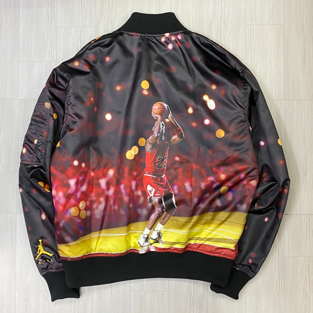 NIKE正規品 【L】 ナイキ AIR JORDAN マイケルジョーダン MJ グラフィック 総柄 MA-1 ジャケット 中綿入り キルティング 刺繍ロゴ