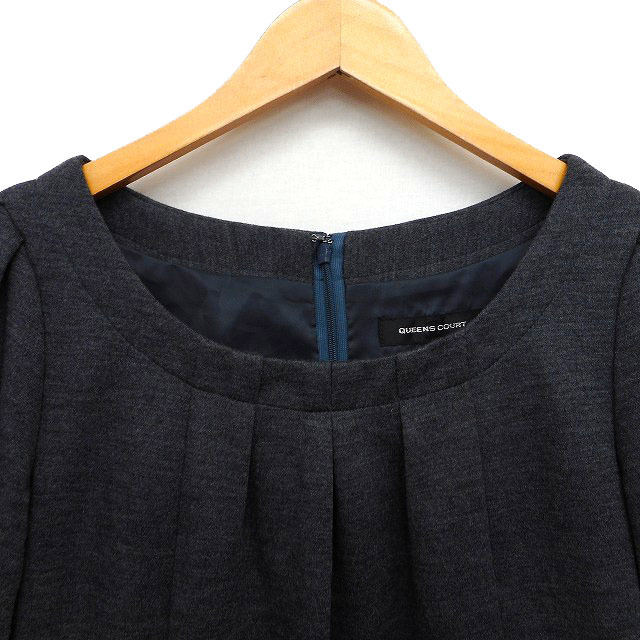 クイーンズコート QUEENS COURT ワンピース フレア ミニ ウール タック 無地 五分袖 1 チャコールグレー /NT29 レディース