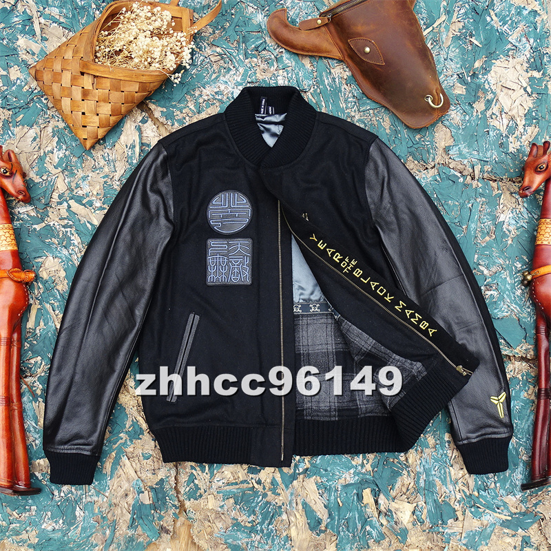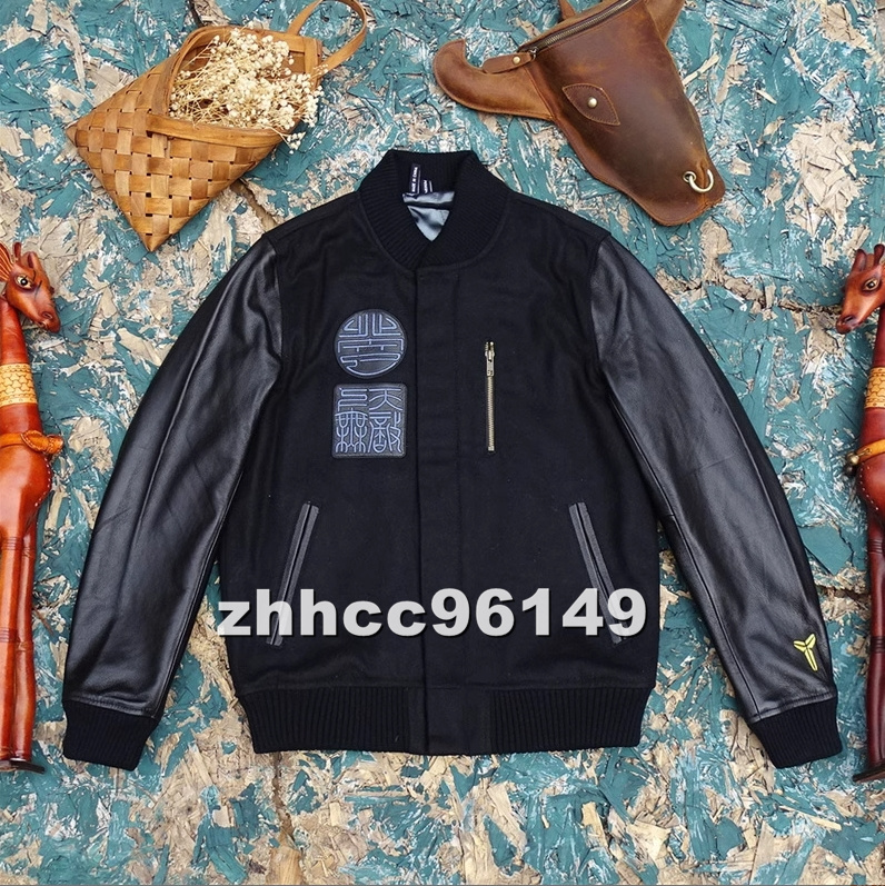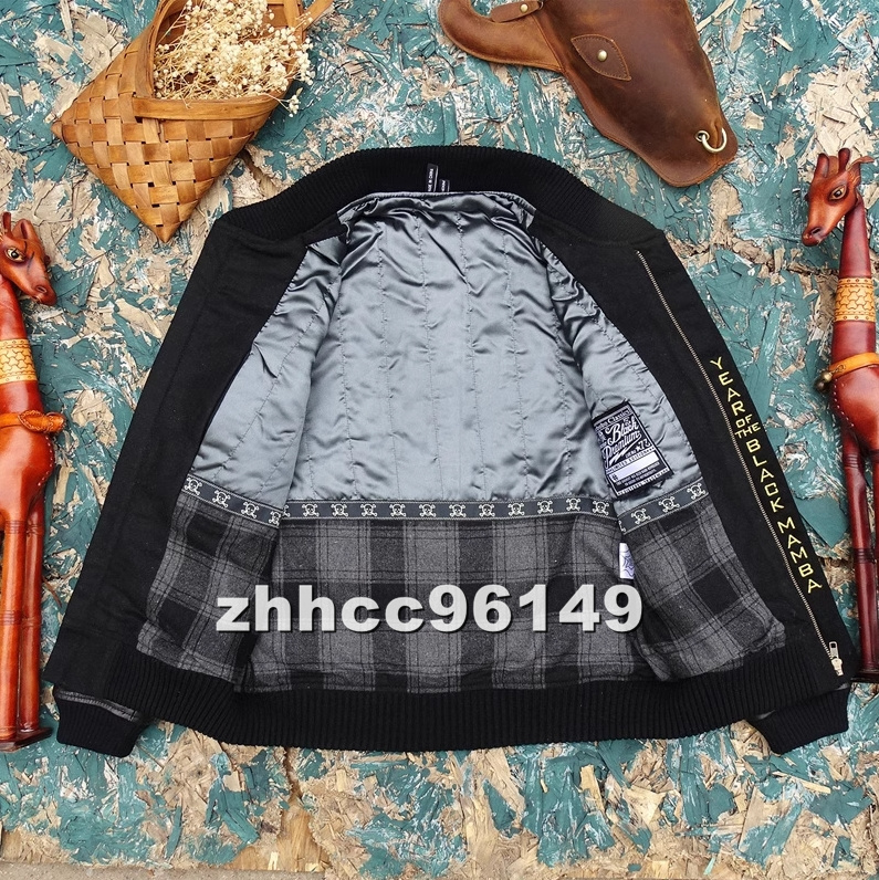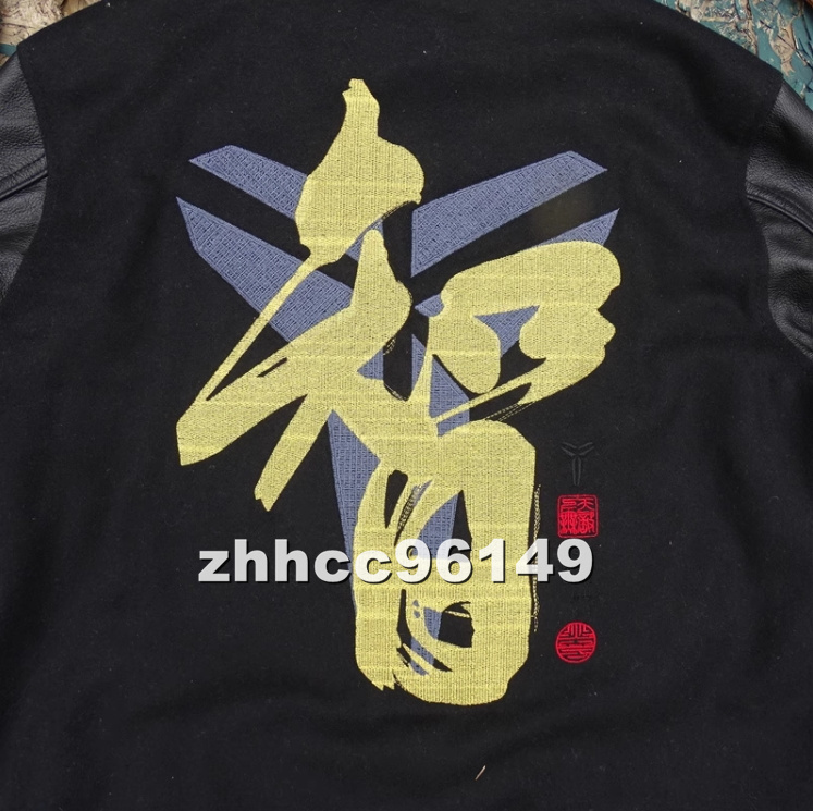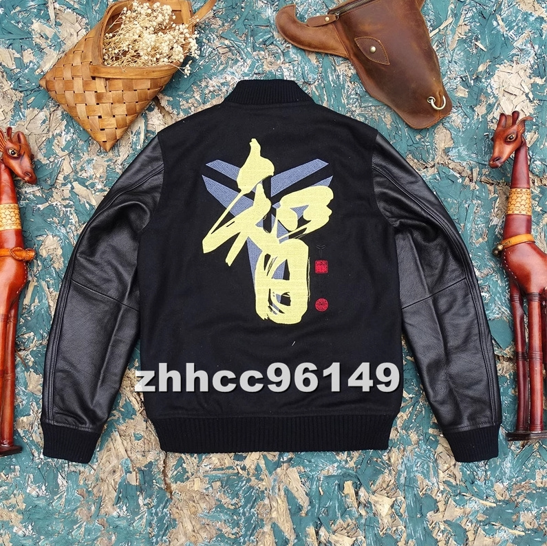 ■美品■YEAR OF THE BLACK MAMBA「智」スタジャン 最上級 牛革袖・ウール切替・レザージャケット ライダース スタジアムジャンパー M~3XL