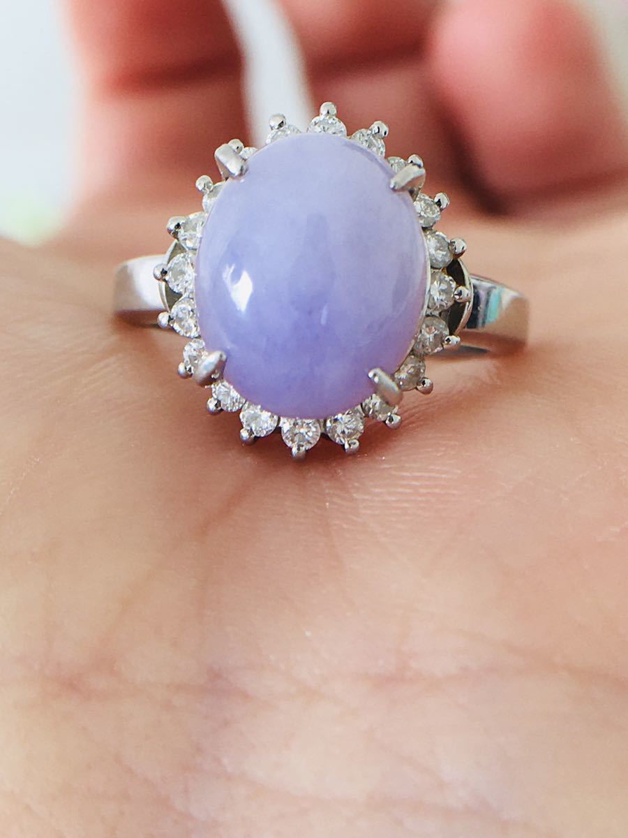 Pt900 リング ラベンダーヒスイ RH4.02ct D0.31ct 8.1g 9号