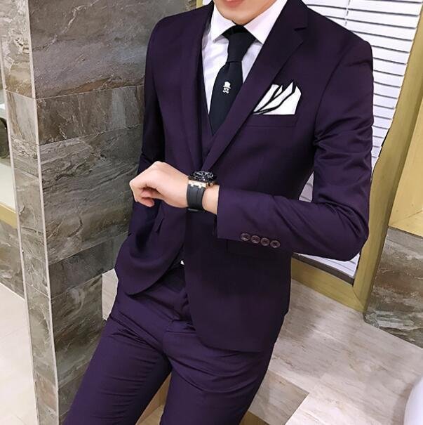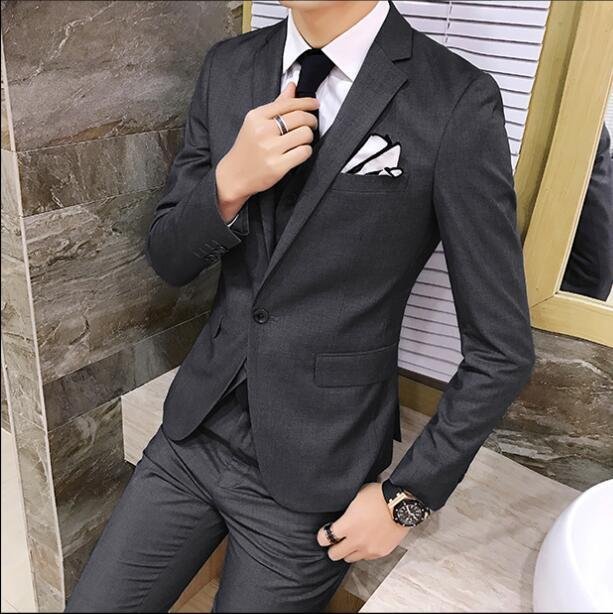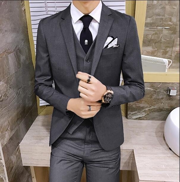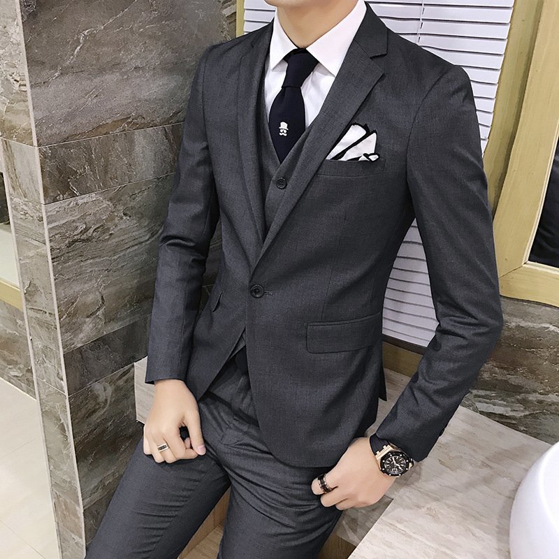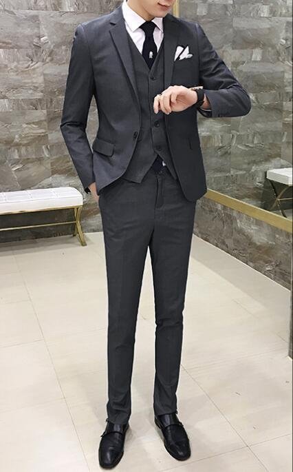 新品 メンズ スーツセット スリーピース 結婚式 スタイリッシュ 細身 スリム 3点セット 無地 イギリス風 一つボタン 就職 濃灰色 S~3XL