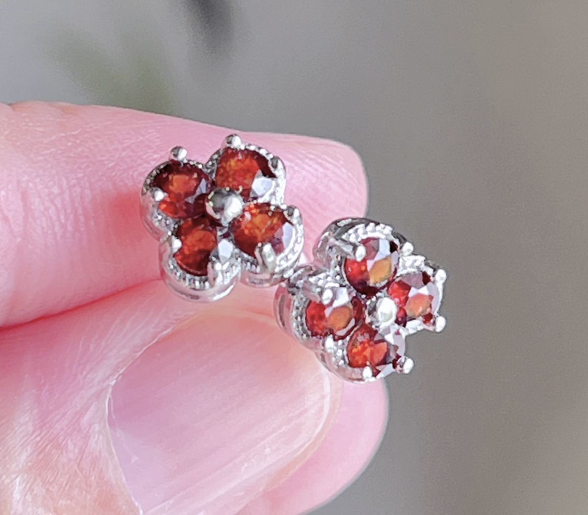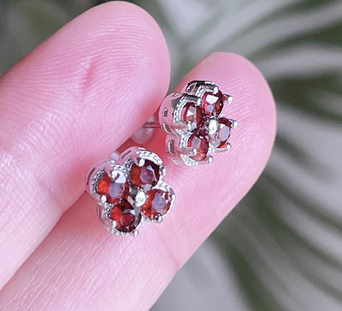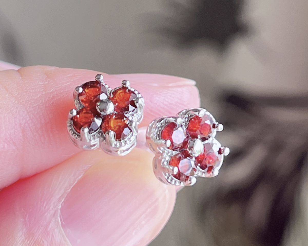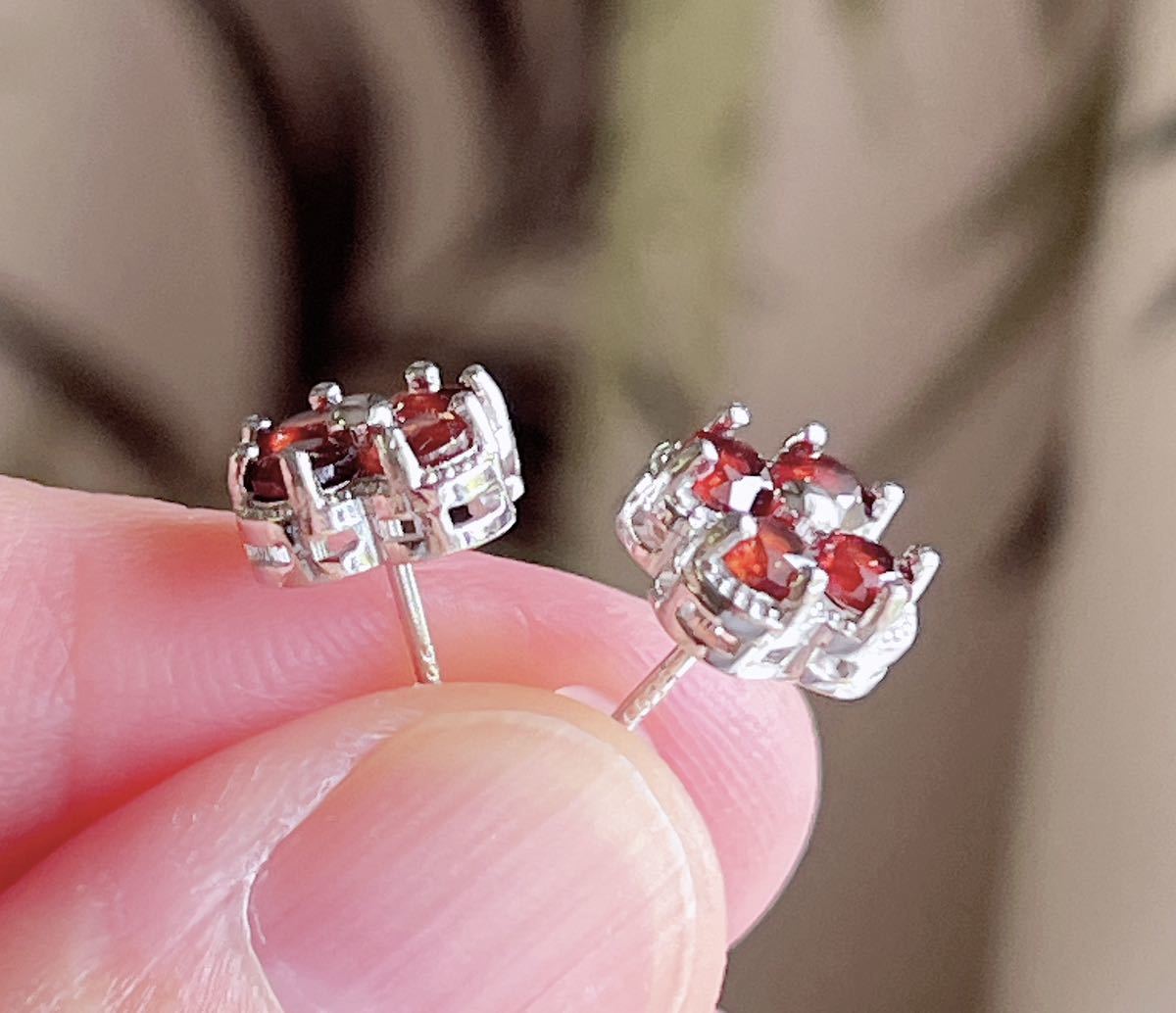 ワインレッドガーネット(石榴石)ピアスのサイズ約:7.7mm*7.7mm*厚さ4mm;