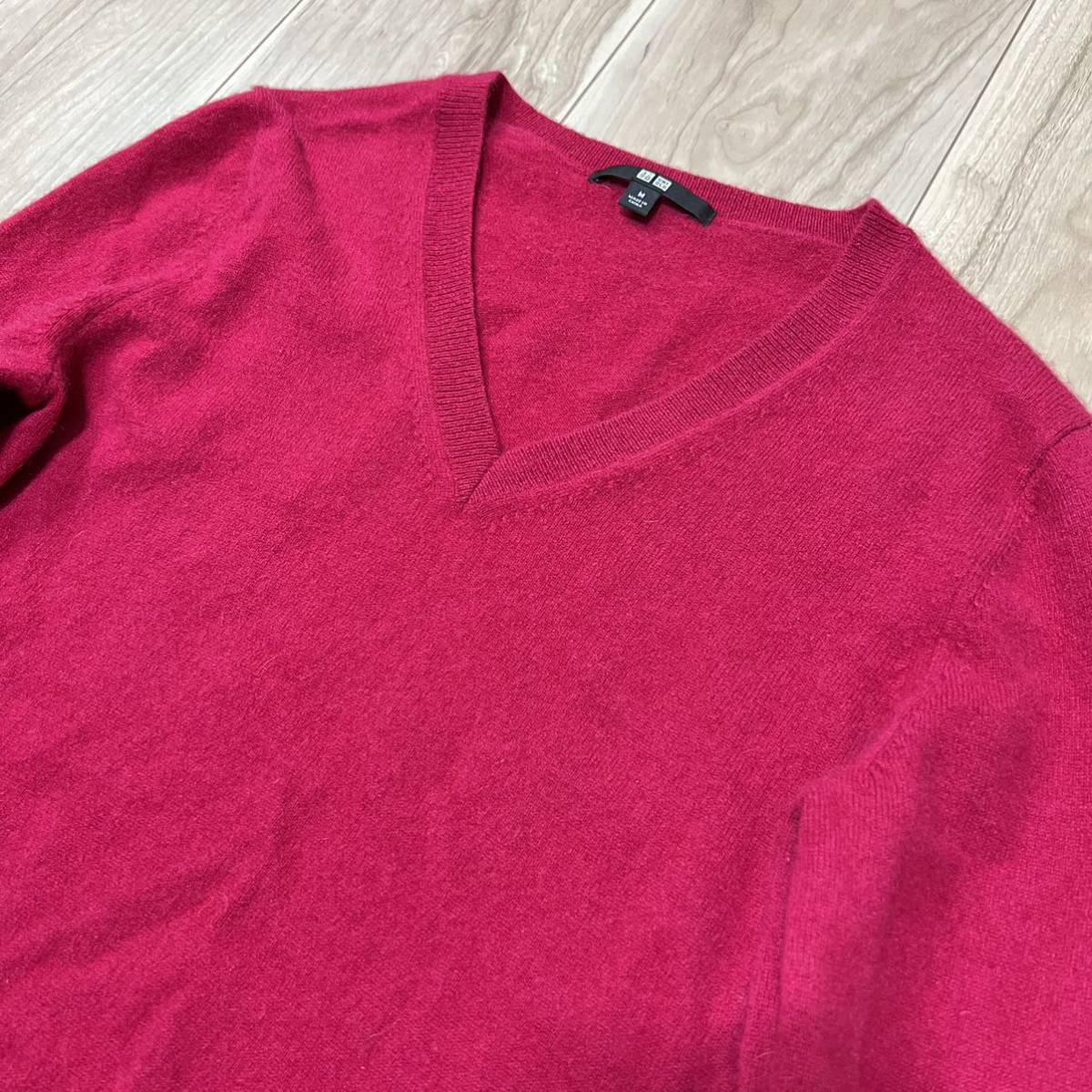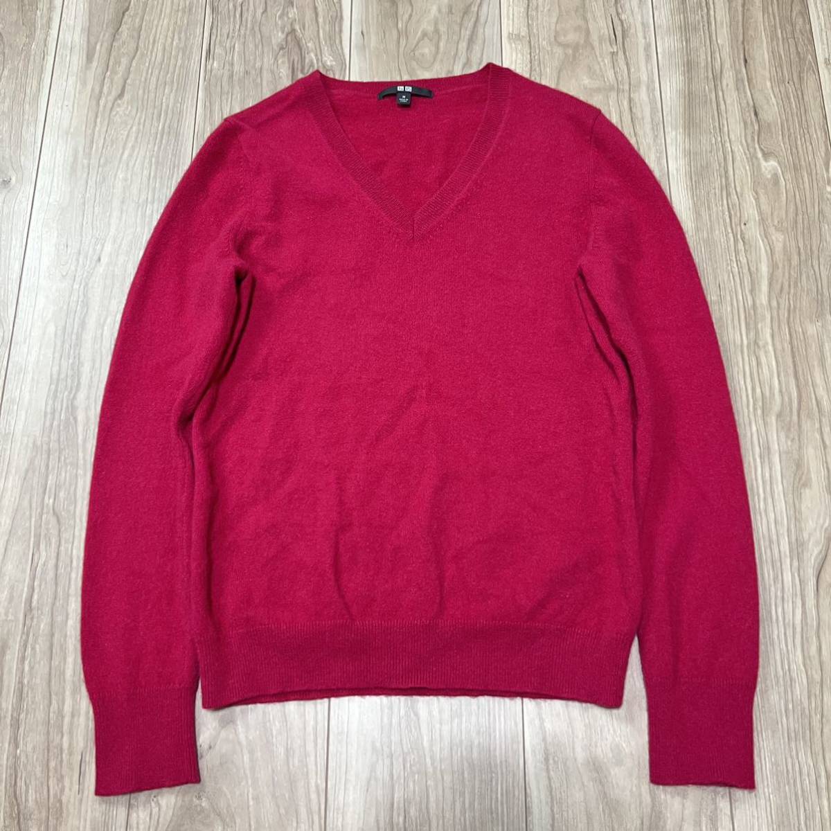 ★送料360円★カシミア100% UNIQLO ユニクロ カシミヤ ニット セーター 長袖 サイズM Vネック ピンク系 レディース 美品 R-5244