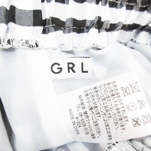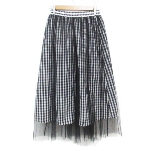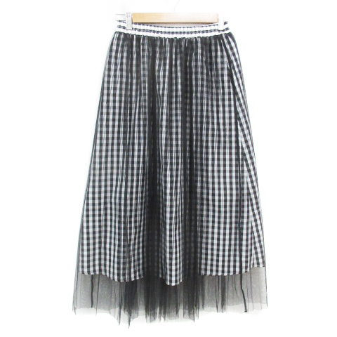 グレイル GRL フレアスカート チュールスカート ロング丈 マキシ丈 ギンガムチェック柄 M 白 黒 ホワイト ブラック /FF48 ■MO レディース