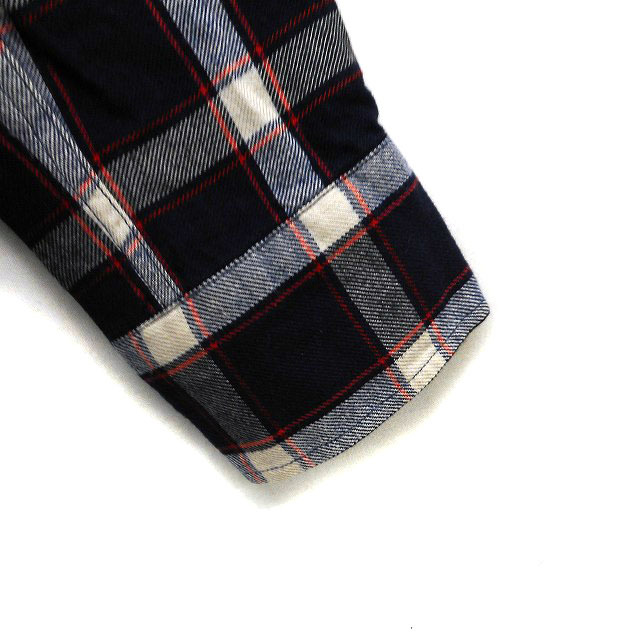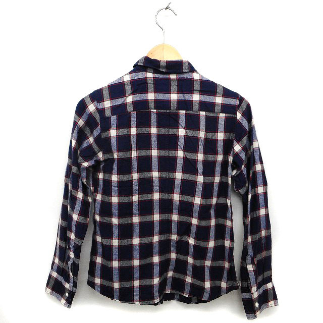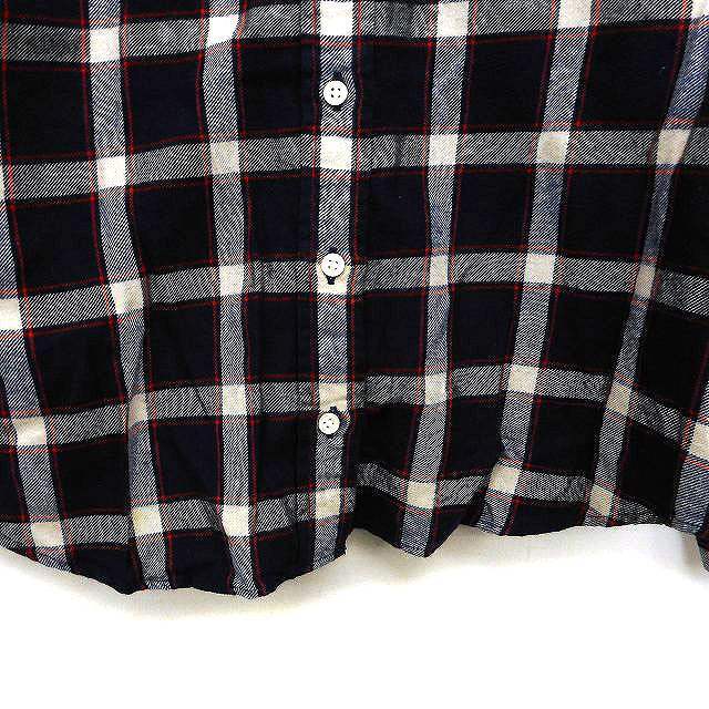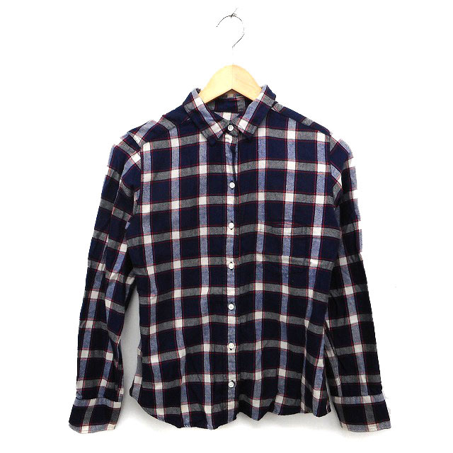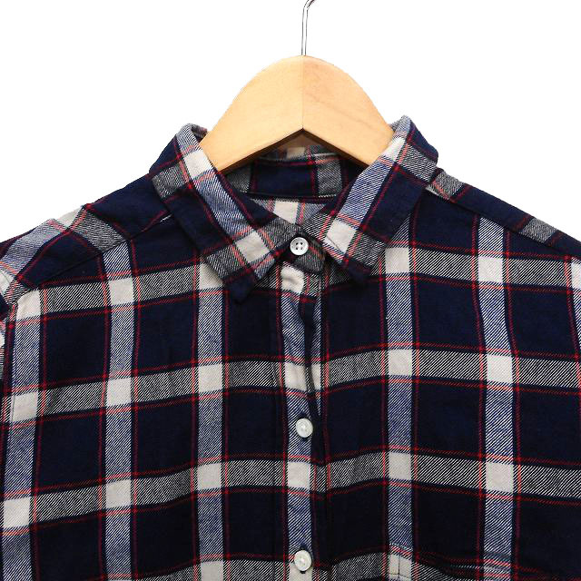 シップス SHIPS シャツ ブラウス ステンカラー チェック ラウンドヘム 長袖 36 紺 ネイビー /NT23 レディース