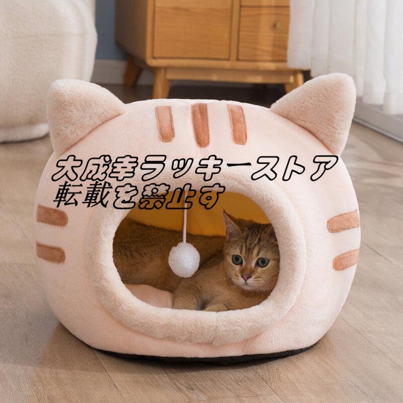ピンク-猫ベッド ねこ ハウス 冬 猫のベッド 洗える 暖かい 子犬 ベッド ドーム型 キャット ベッド もこもこ クッション付き ふか z1646