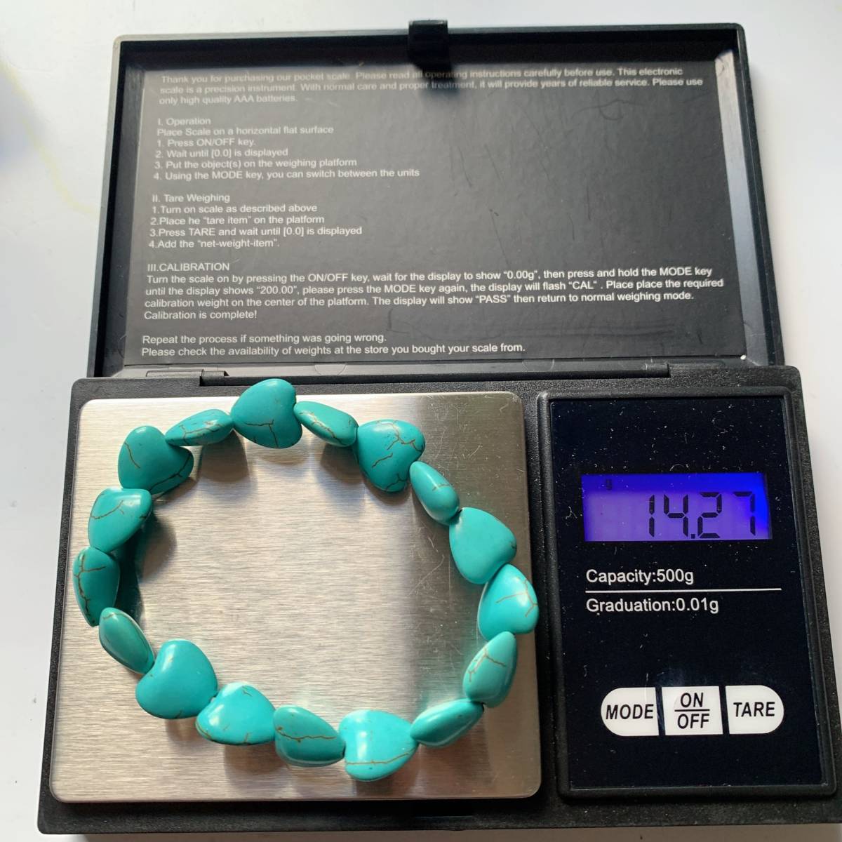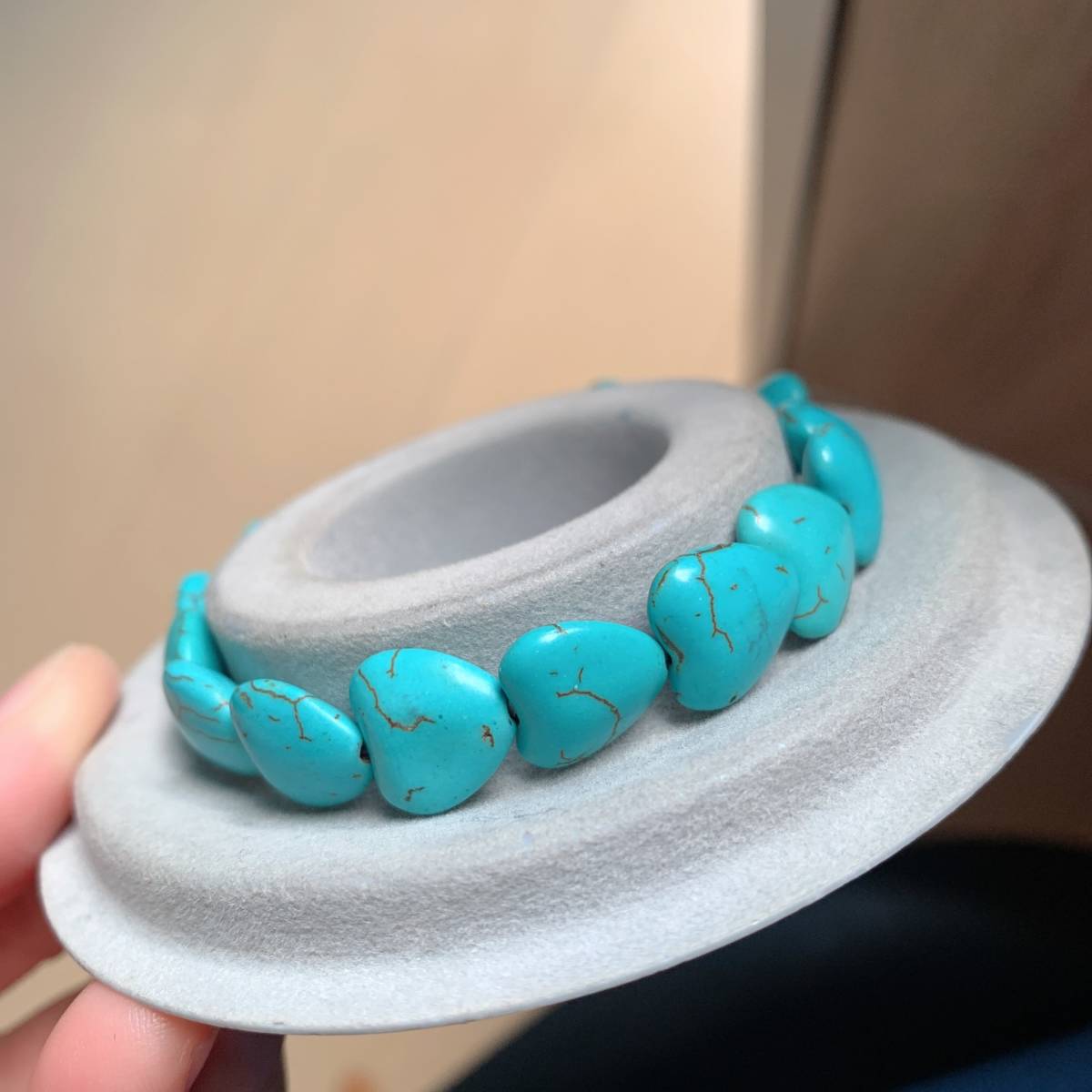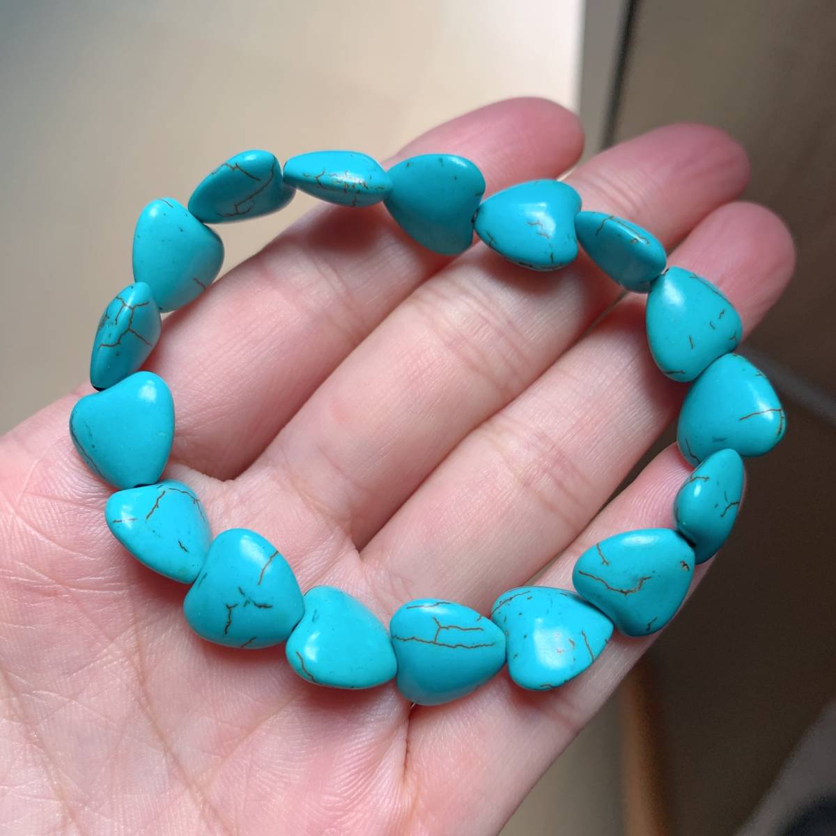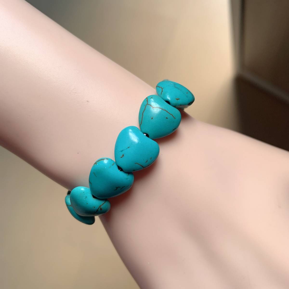 ◇人工ターコイズ◇人工石◇ブレスレット◇ハート形◇巾着袋付き◇プレゼントにも 016B111401