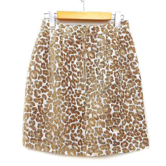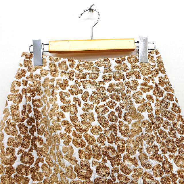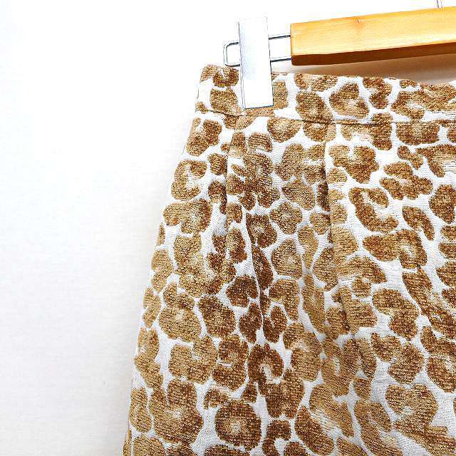 デビュー ド フィオレ Debut de Fiore 台形 スカート ミニ 膝上 ヒョウ柄 タック グログラン 38 アイボリー 白 /HT15 レディース