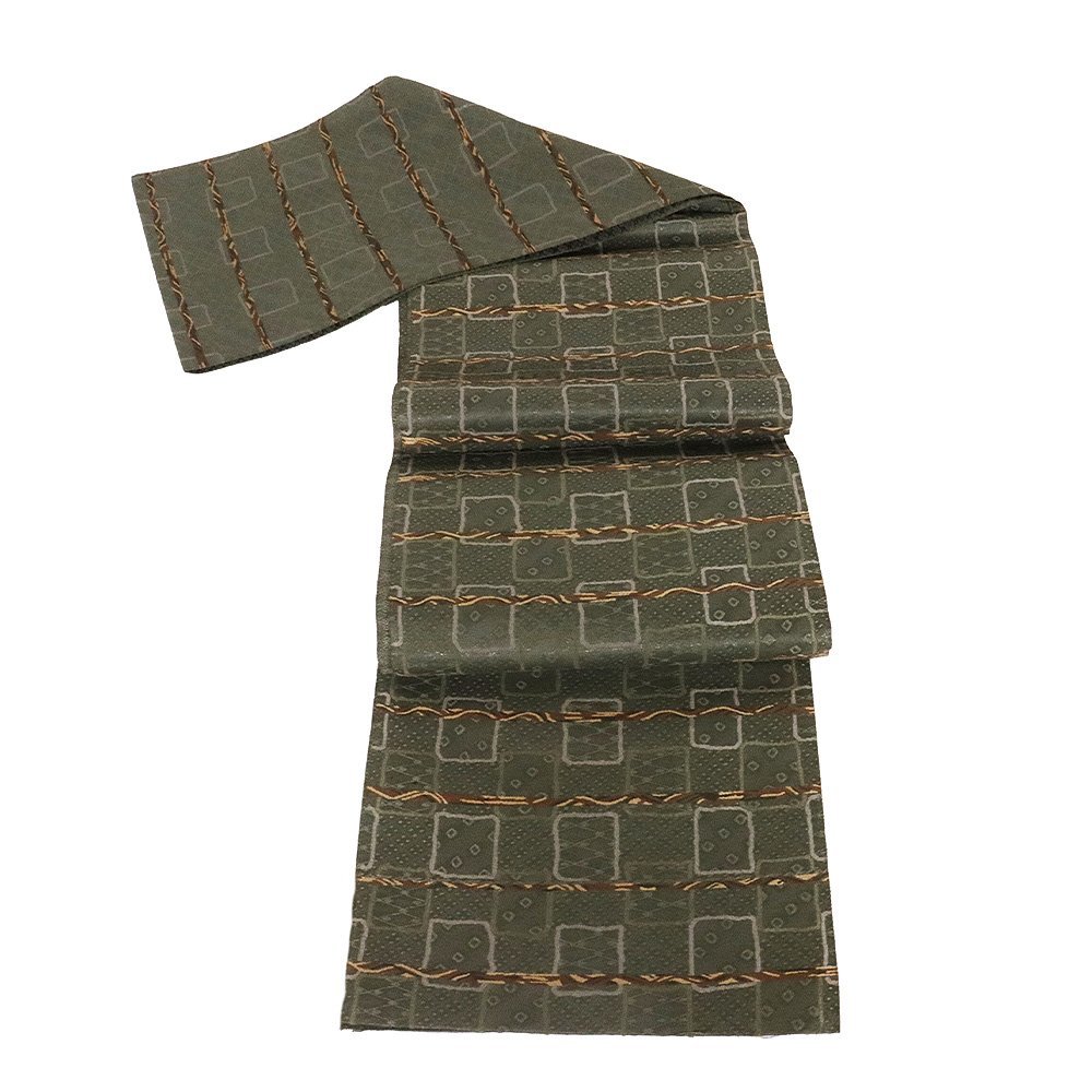 | 西陣織袋帯 緑地 格子縞・鹿の子・四つ目菱・菱文 新品 仕立て上がり |