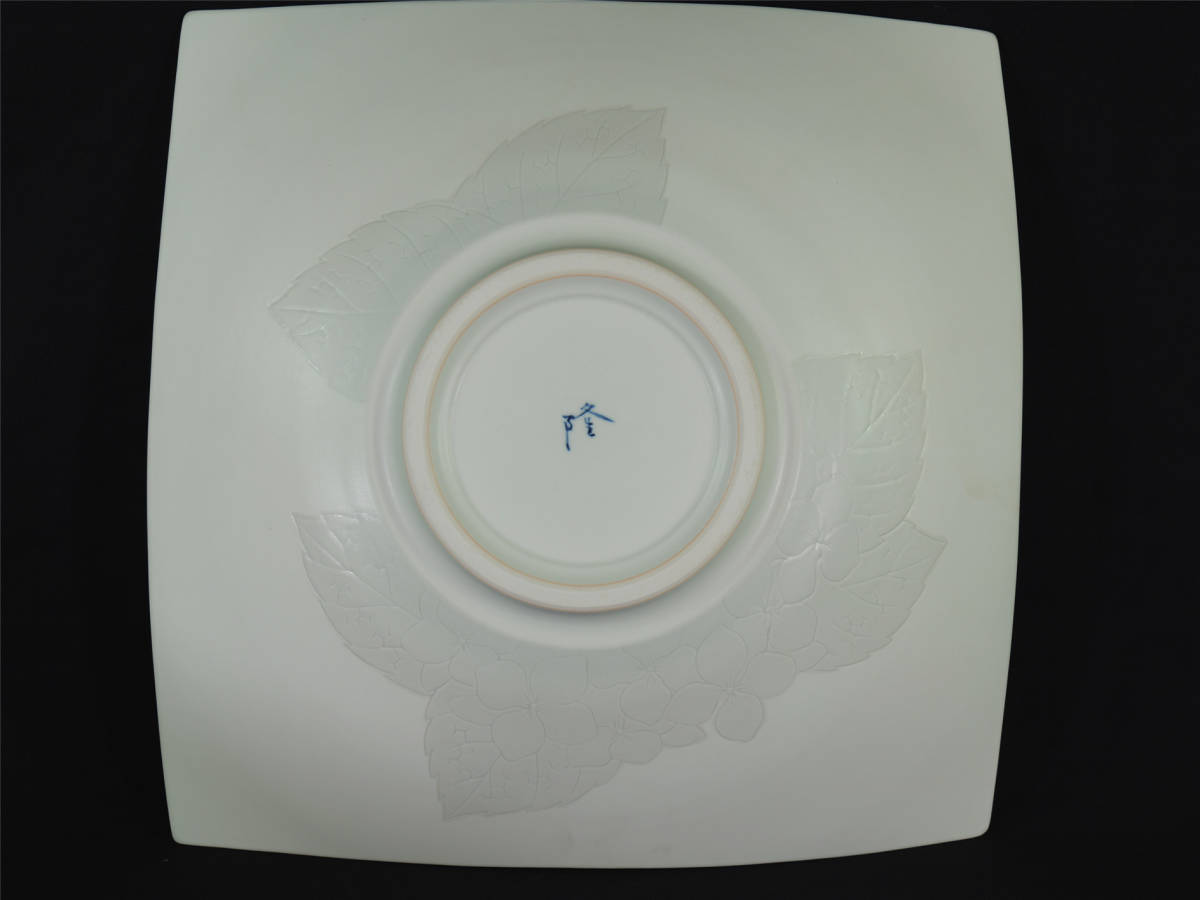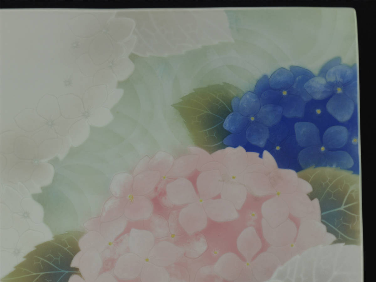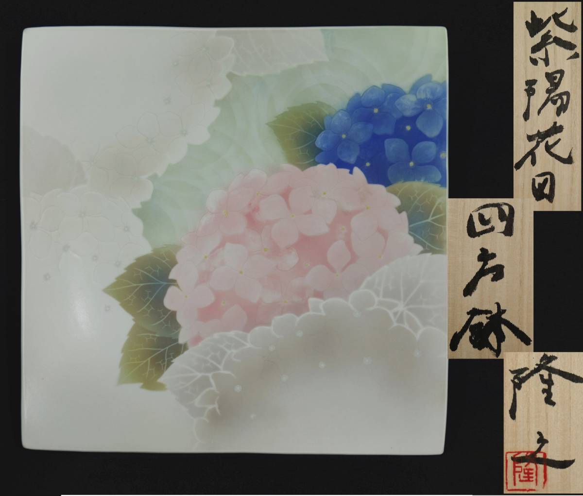 藤井隆之【吹染紫陽花図四方鉢】共箱共布 本物保証 人気作家 |