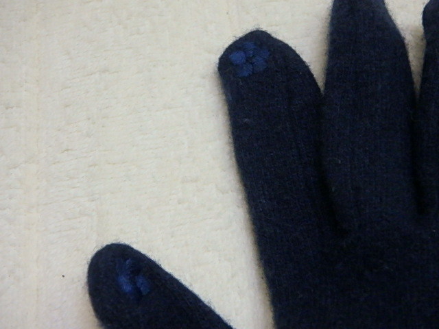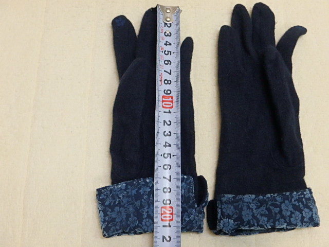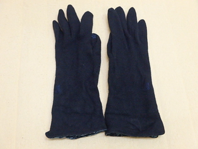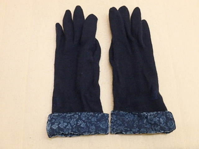 n311k ランバン LANVIN 紺色 手袋 花柄 スマホ・タッチパネル対応 レディース 女性用 中古