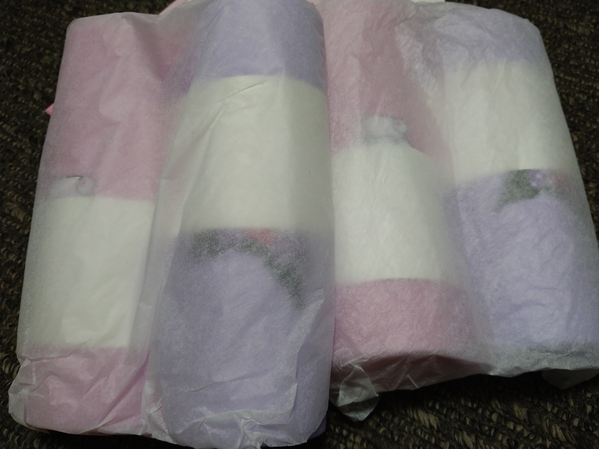 画像の通り、ピンク(マイメロディ)とパープル(クロミ)の淡い2カラーの合わせが可愛いケースです。