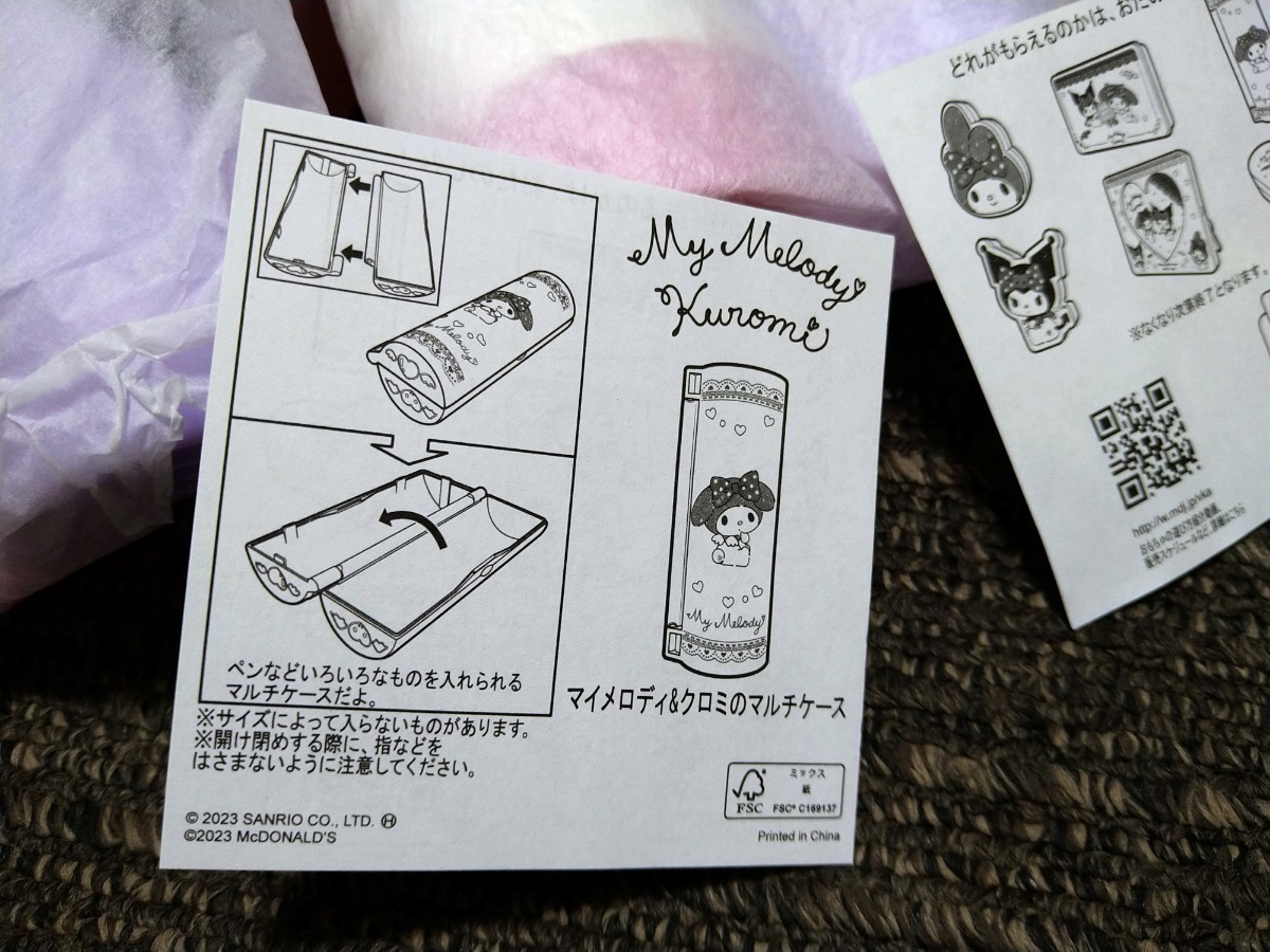 マクドナルドのハッピーセットで貰った、『マイメロディ&クロミのマルチケース』です。