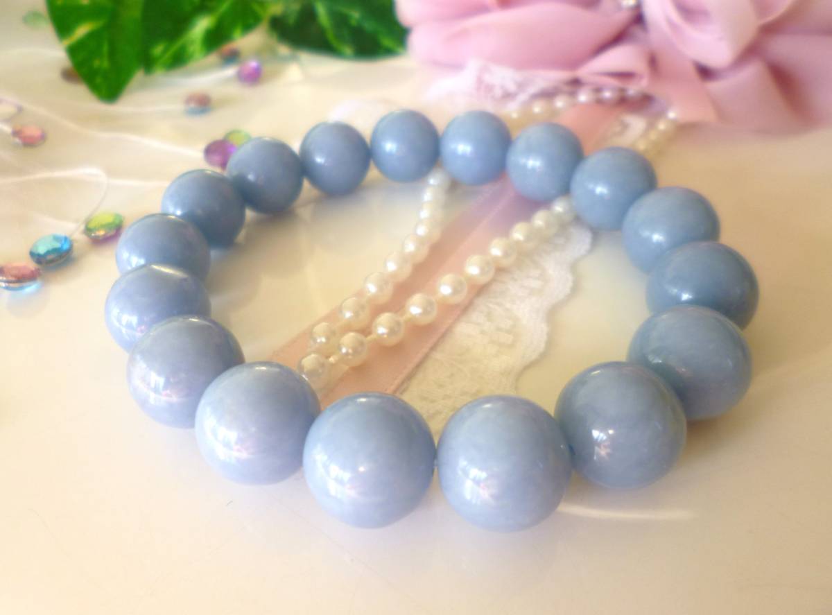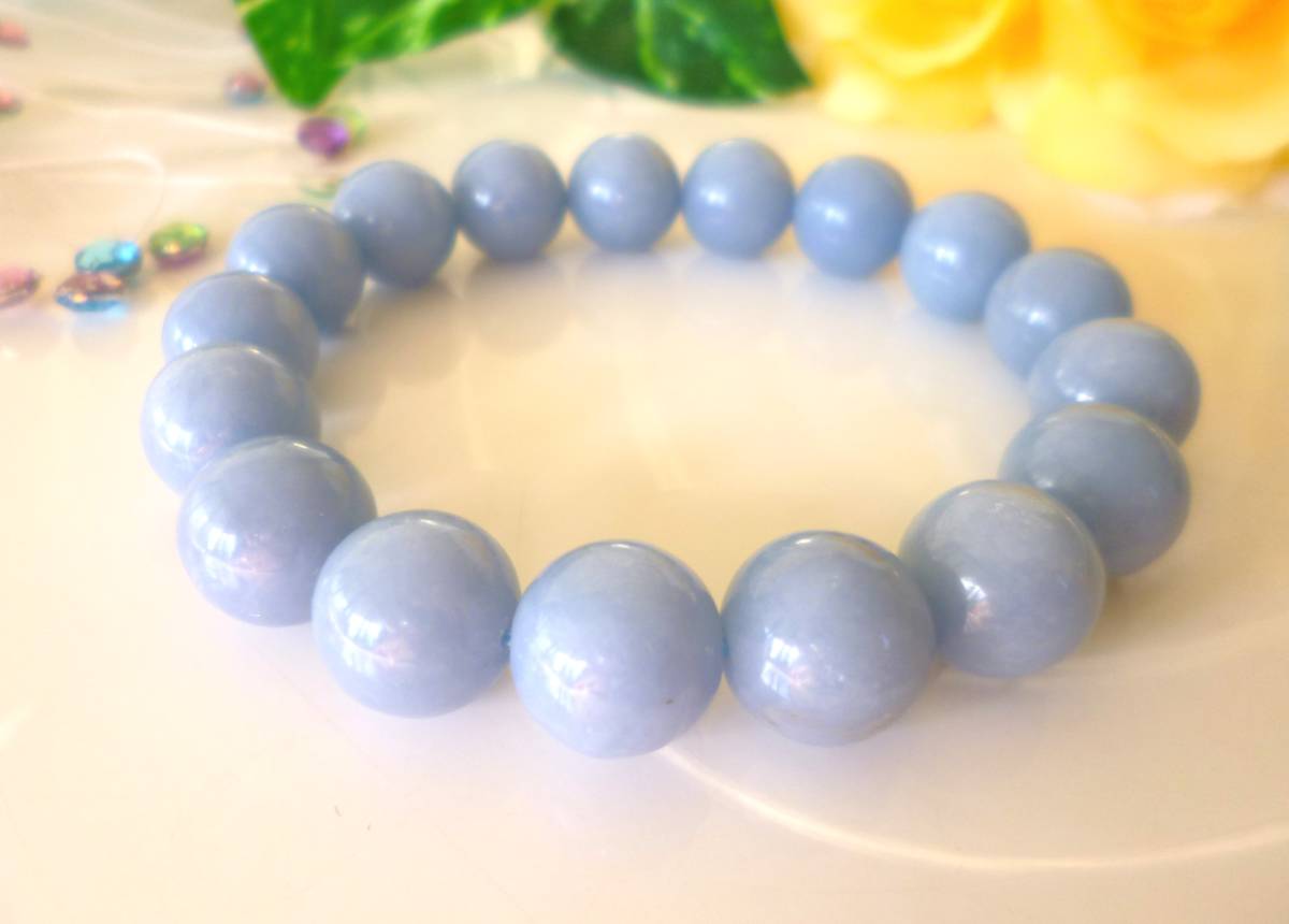 ☆天使の微笑(ほほえみ)☆心のやすらぎ☆綺麗なパステルブルー☆高品質AAA☆エンジェライト☆ ☆大珠12mm☆ ☆16cm ☆