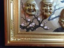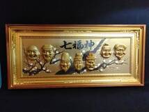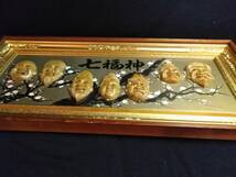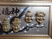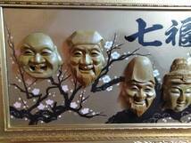 七福神 梅 紅白梅 招福 縁起物 大型木製 額装 ガラス入り 43cm×93cmx5cmです。