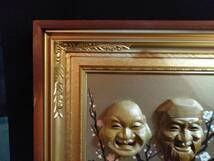 七福神 梅 紅白梅 招福 縁起物 大型木製 額装 ガラス入り 43cm×93cmx5cm