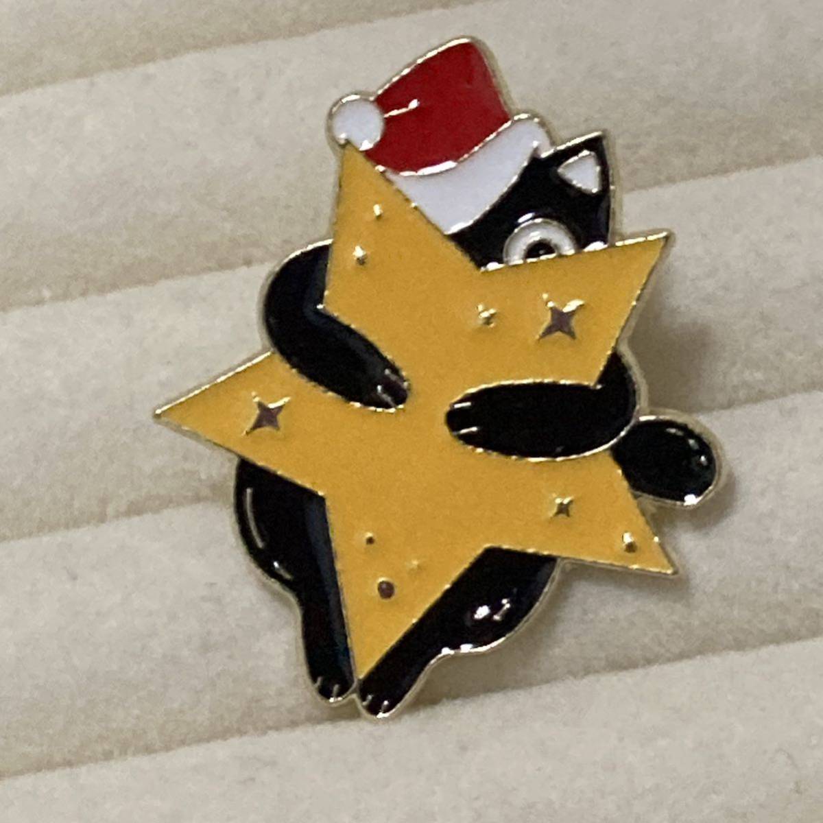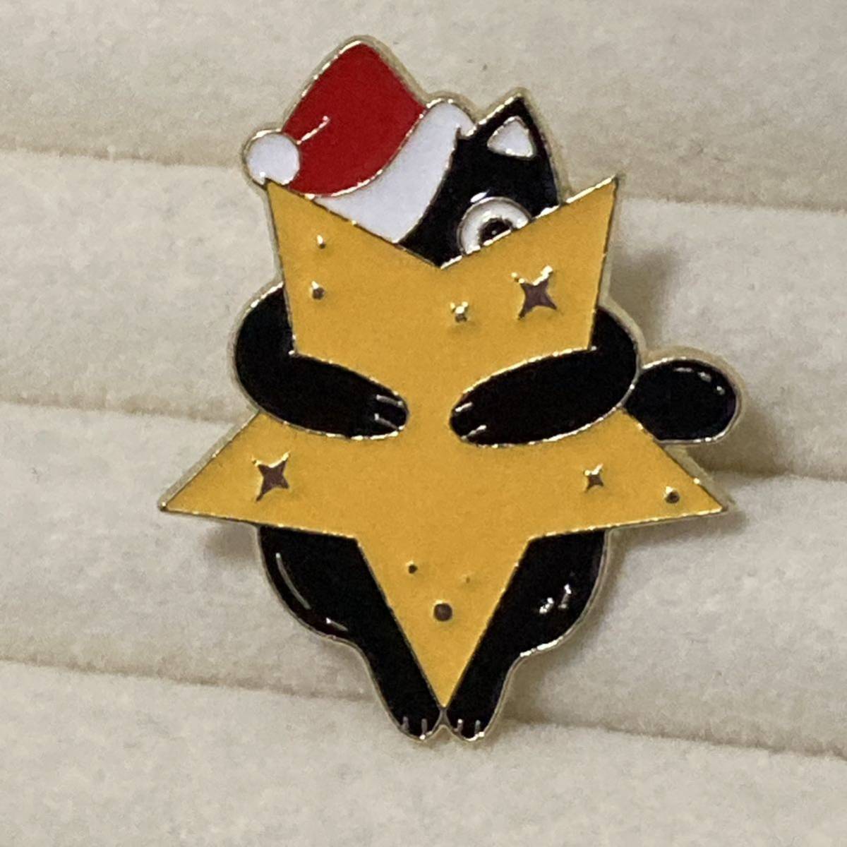 新品 クリスマスの猫のブローチ 季節物 12月 黒猫 かわいい ギフト プレゼント ピンブローチ ピンバッジ 飾りスター柄  星 サンタ帽子