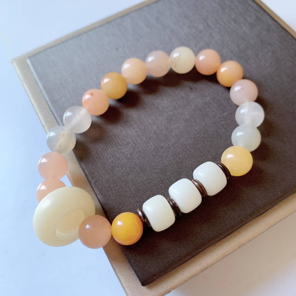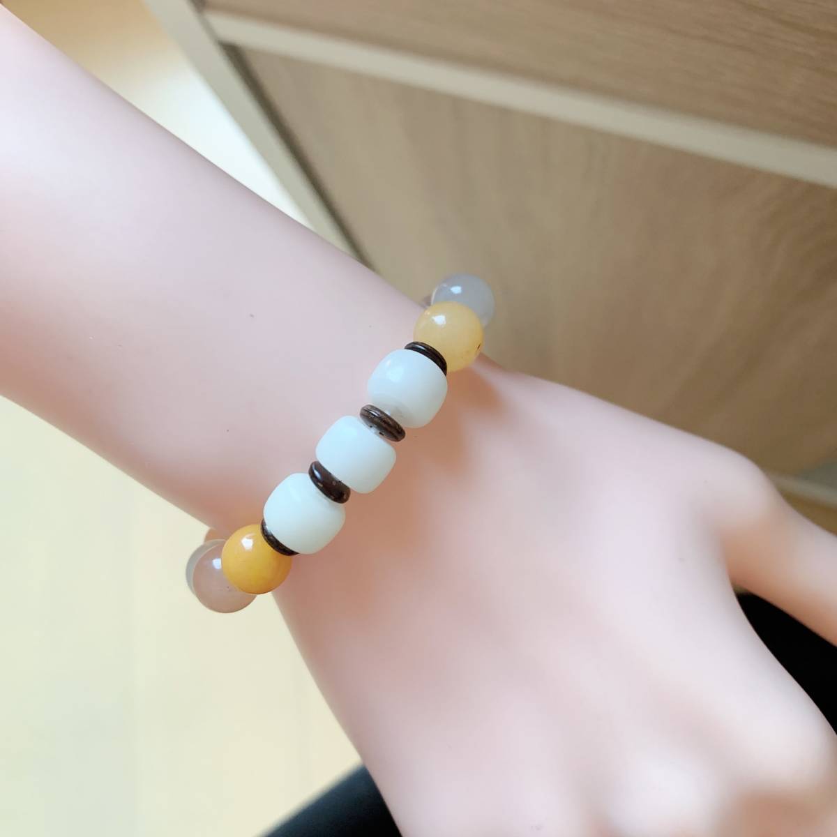 金糸玉+菩提白玉◇ブレスレット◇パワーストーン◇天然石◇翡翠・ヒスイ◇巾着袋付き◇プレゼントにも 020B110801