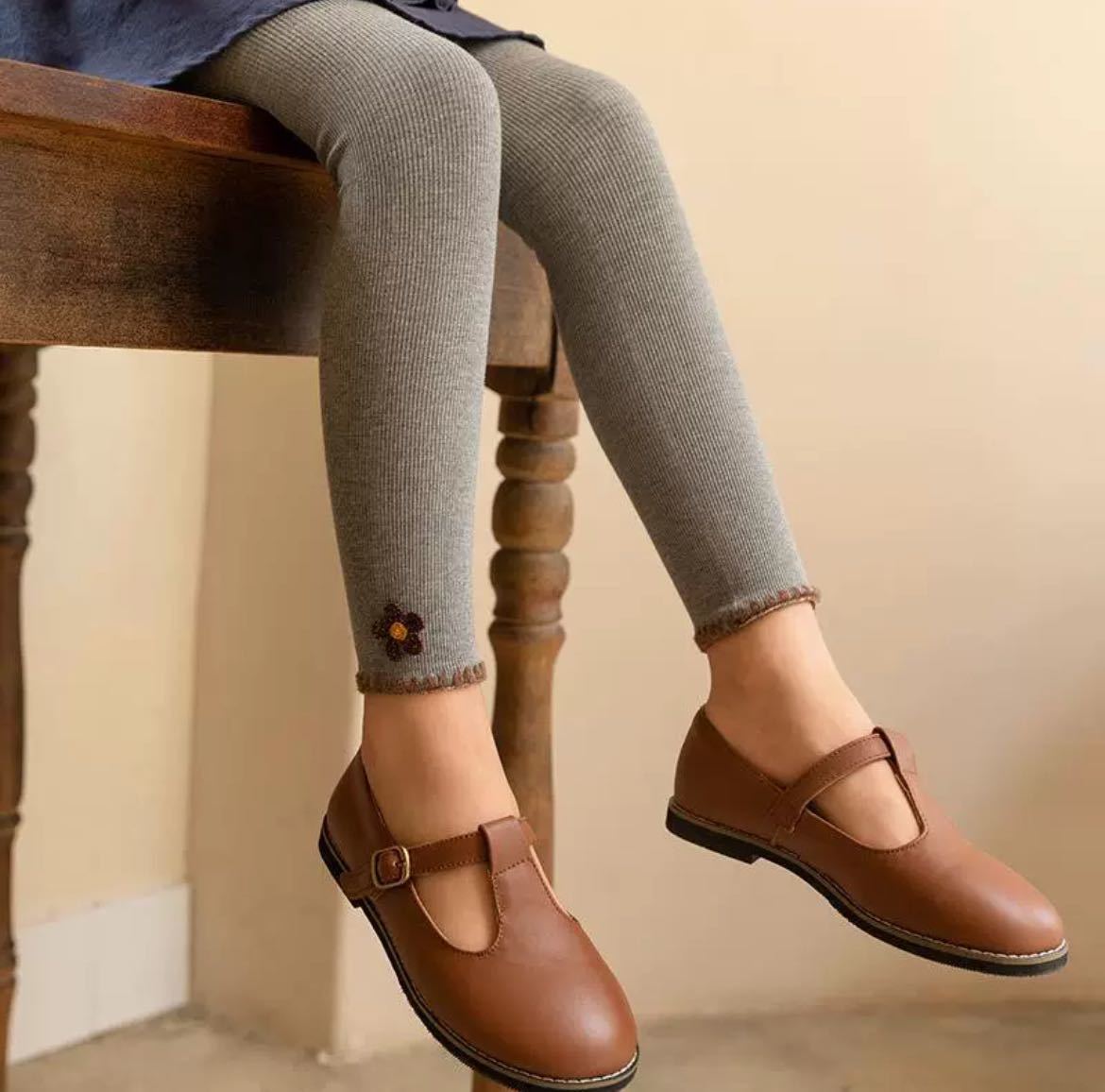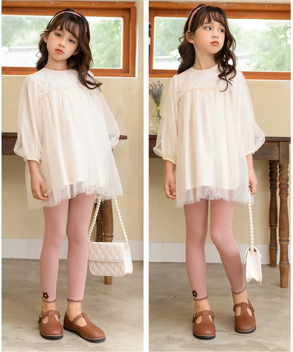 かわいい花柄 ワッフルコットン 子供用リブレギンス スパッツ キッズ 女の子 140