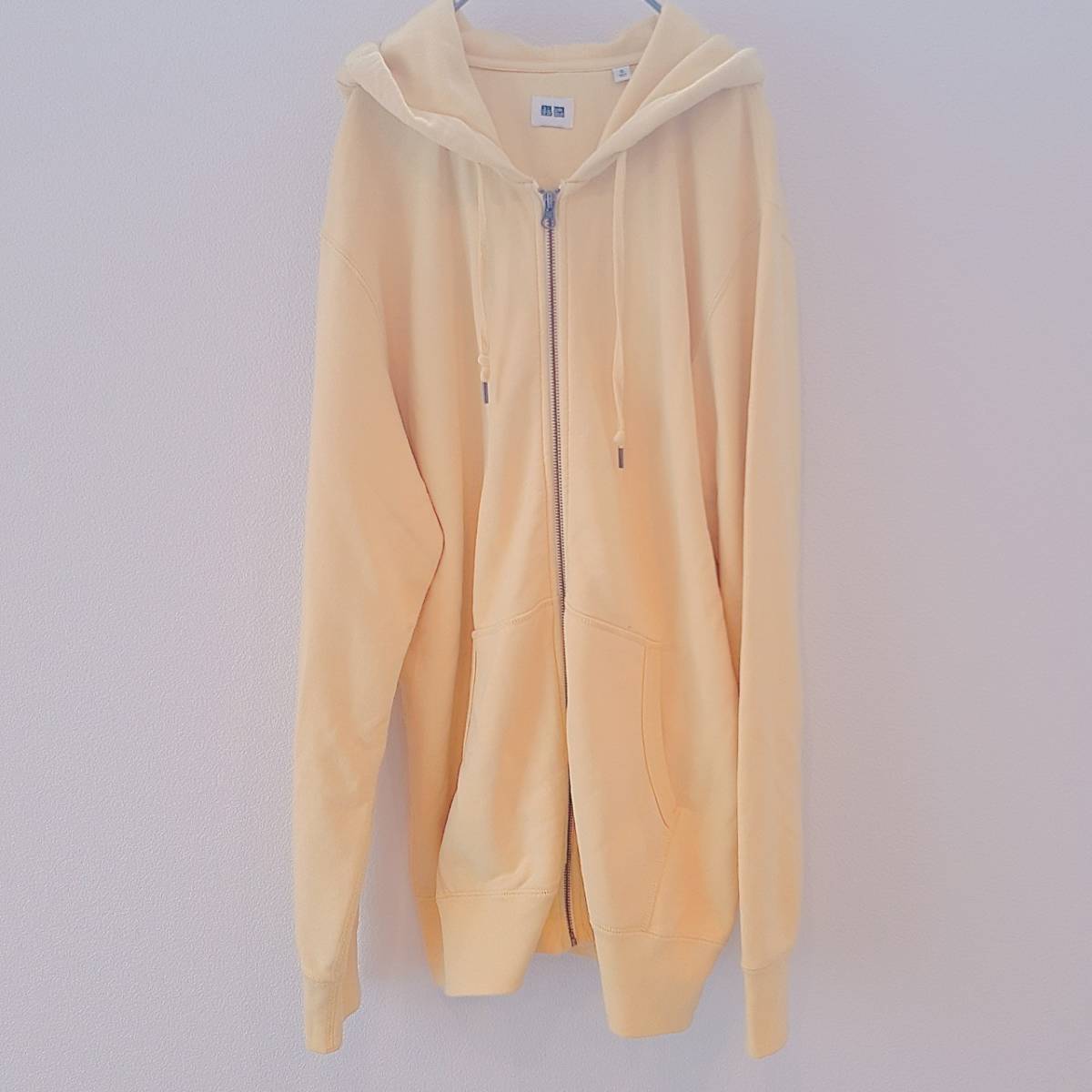 美品 UNIQLO ユニクロ トップス パーカー ロング ジップアップ 黄色 XL レディース |