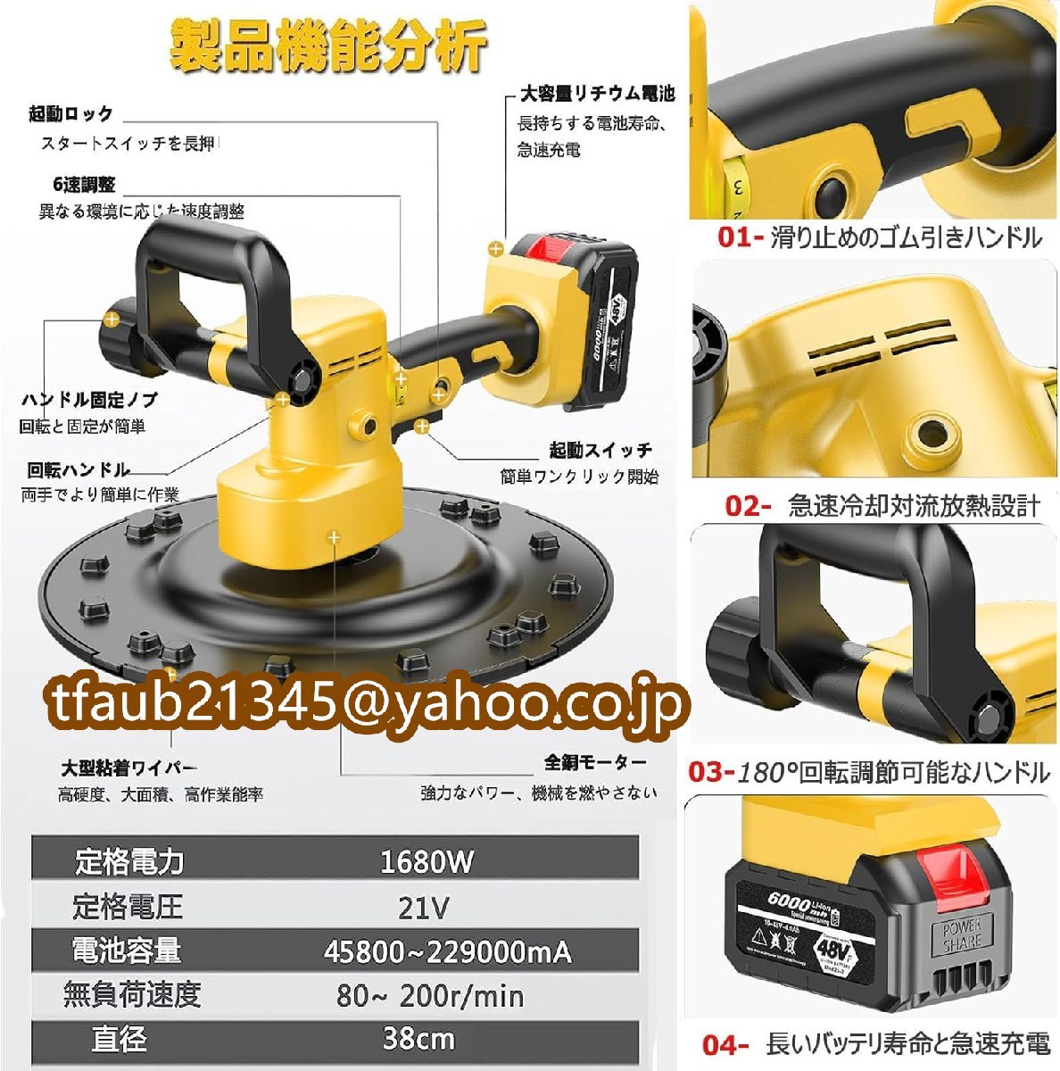 電動 コンクリート研磨機 小型 円盤 パワートロウェル 左官トンボ 土間仕上げツール ハンドヘルド 電動サンダー 6速調整 大容量電池