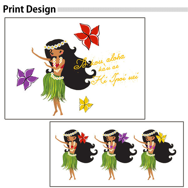 レディースL対応(タグ表記M)/ホワイト【tl076】*CUTEフラガール1人+3人プリント*男女兼用/長袖/Tシャツ/フラダンス/ハワイアン/送料無料