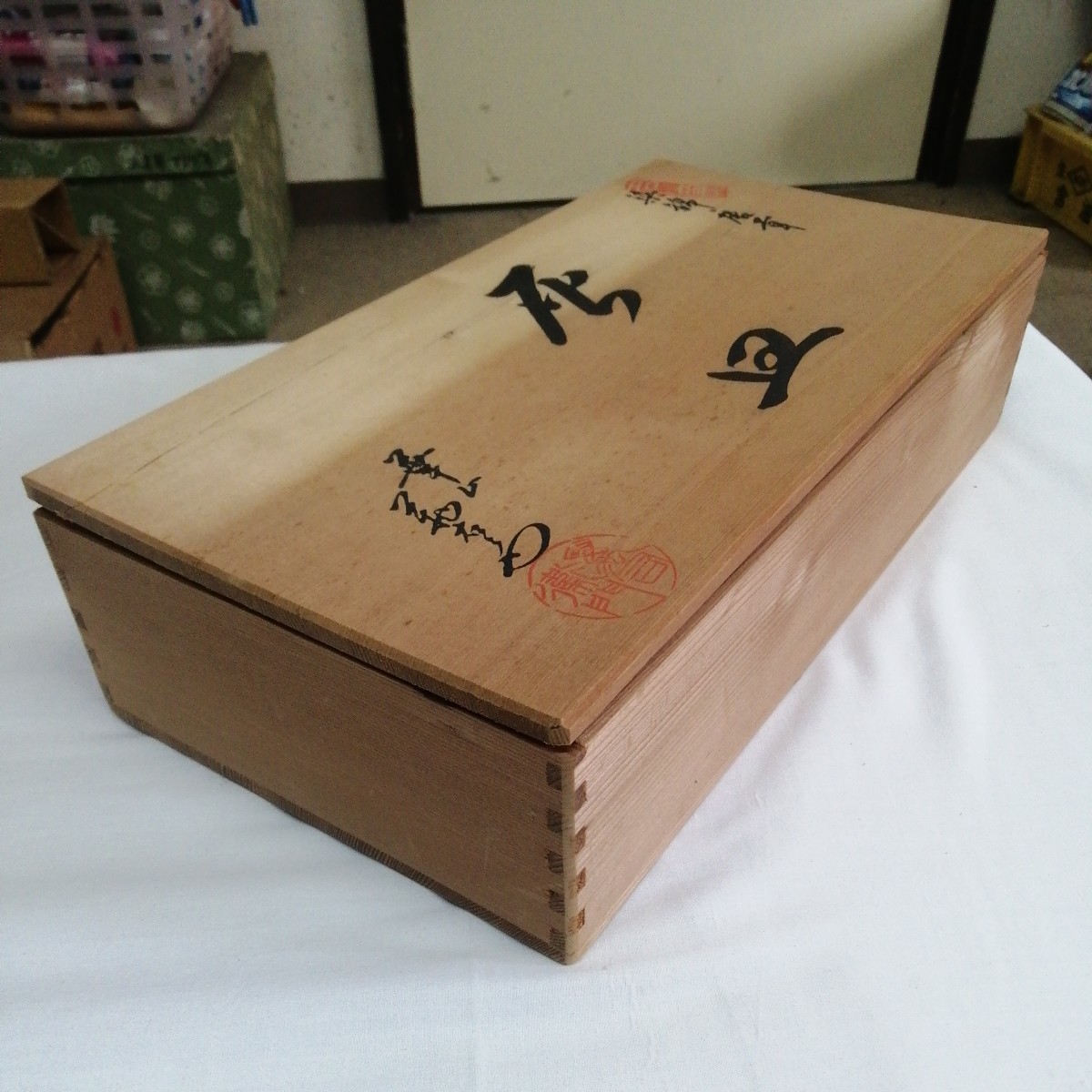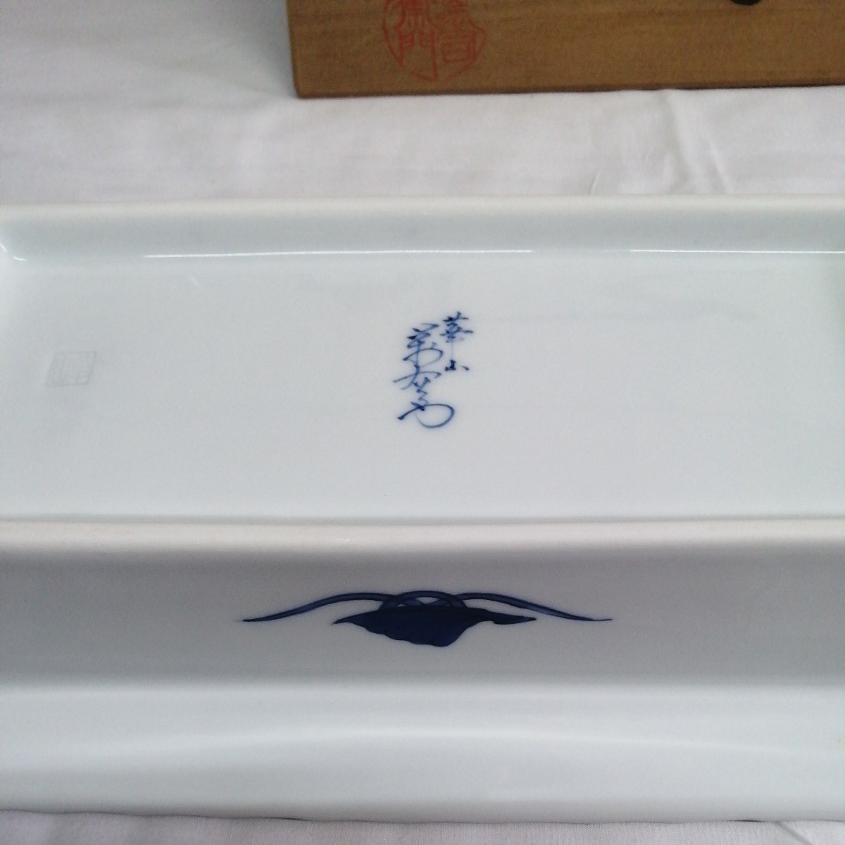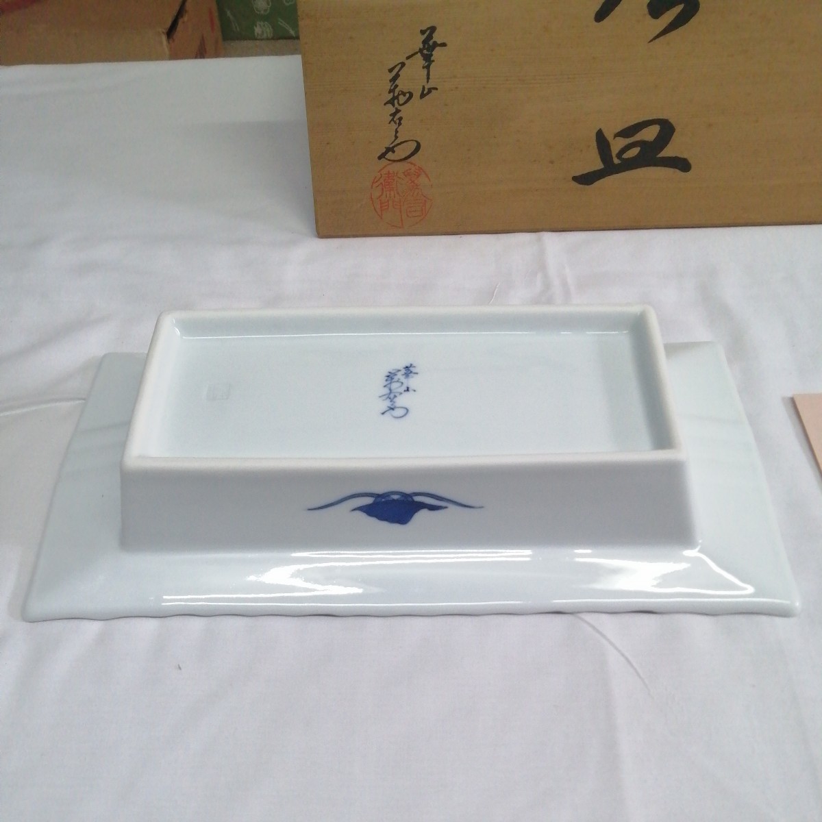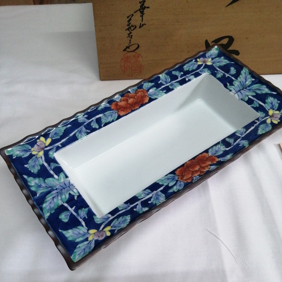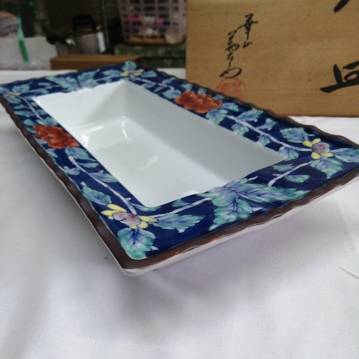 有田焼 華山 萬右衛門 染錦 唐 華 木箱入 灰皿 陶磁器 社長室 応接室 (約高33×16.1cm) 大型灰皿