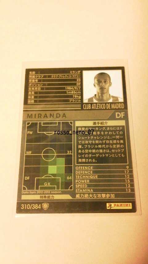 ☆WCCF2012-2013☆12-13☆310☆白☆ミランダ☆クラブ・アトレティコ・マドリー☆Miranda☆ Club Atltico de Madrid☆