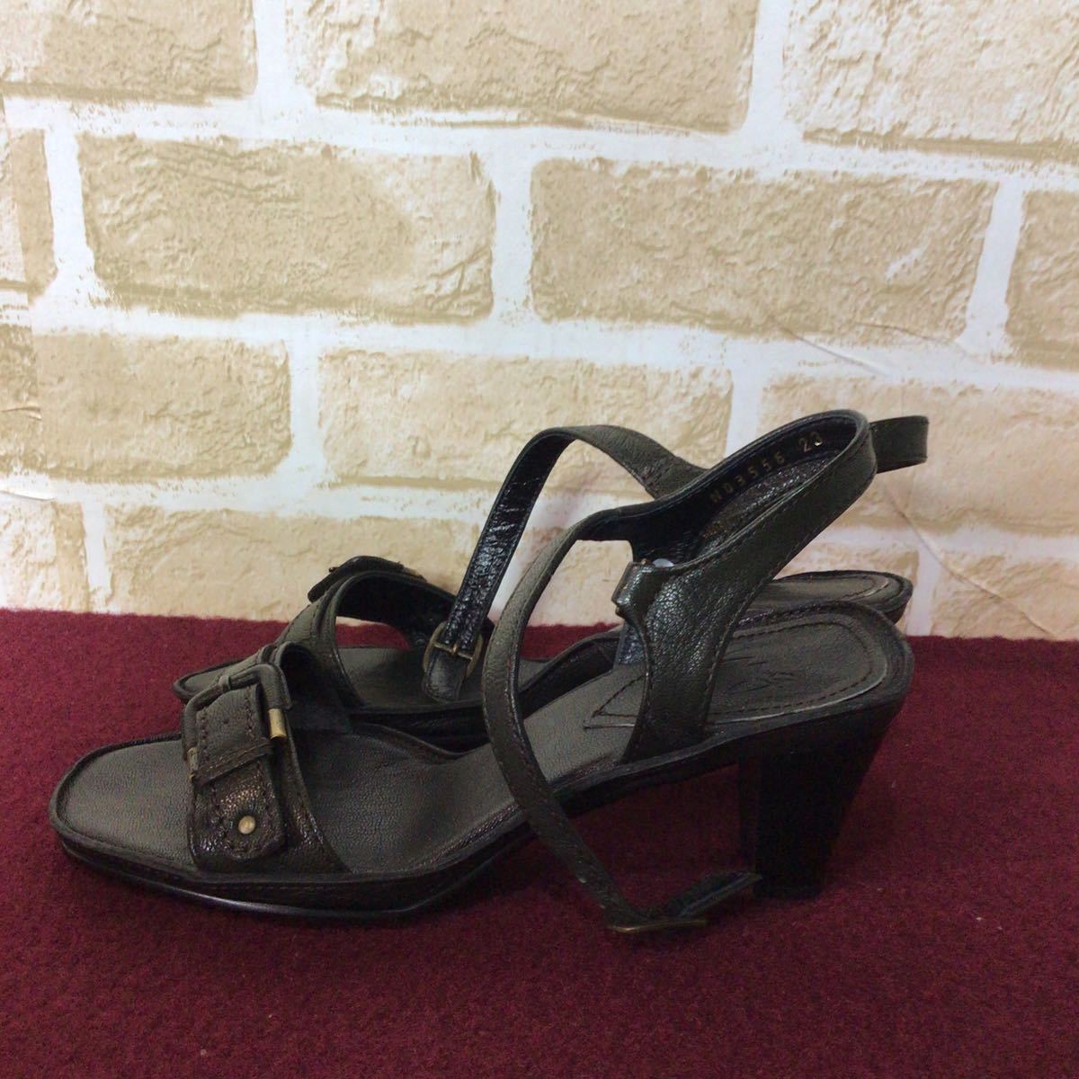 【売り切り!送料無料!】A-324 ing!サンダル!23.0cm!ブラック!黒!レザー!箱あり!ベルトデザイン!おしゃれ!かわいい!太めヒール!中古!美品