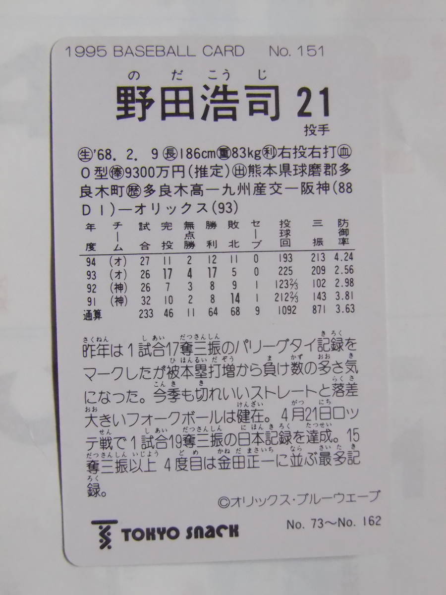 カルビー ベースボールカード 1995 No.151 野田浩司 オリックスブルーウェーブ