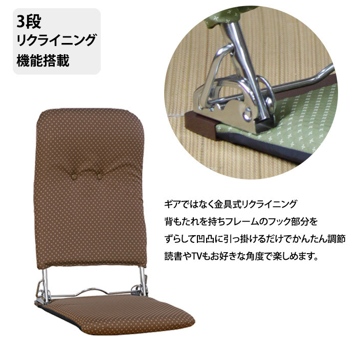 3段階リクライニング機能付きでゆったりくつろげます。